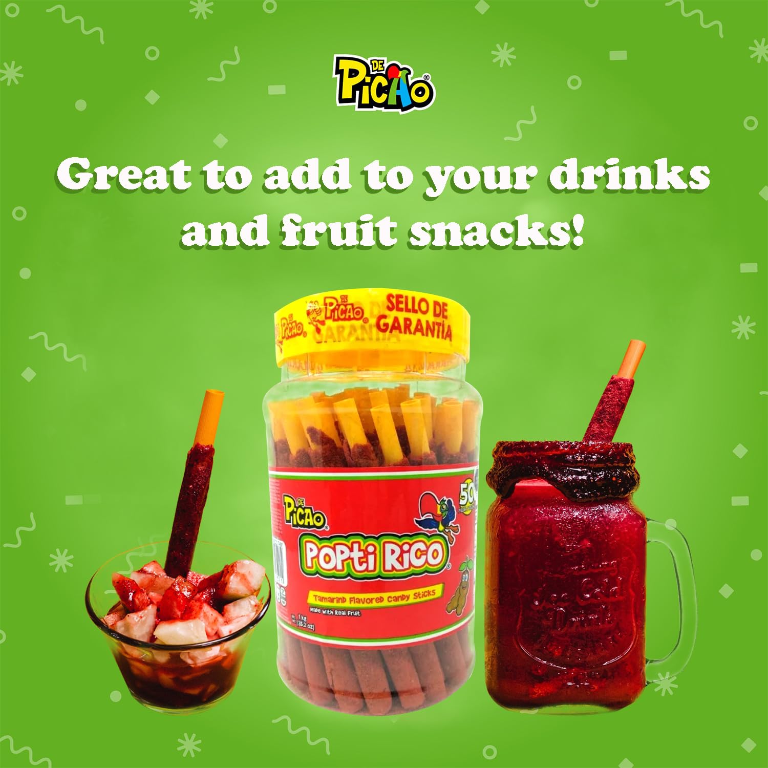 PiCAo Spicy Tamarind Candy Sticks, 50 count, 1kg., Popti Rico Tamarindo, Dulces Mexicanos, 100% Tamarind Mexican Candy