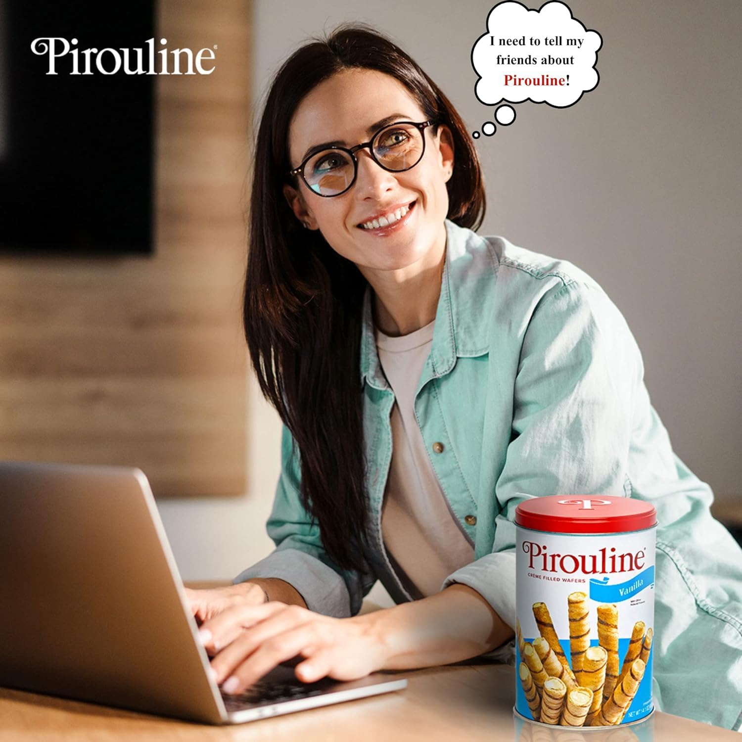 - Q: What are Pirouline Vanilla Rolled Wafers made of? A: Pirouline Vanilla Rolled Wafers are crafted using high-quality ingredients that create a delightful balance of sweet and creamy flavors. Each wafer features a unique Signature Swirl, ensuring you enjoy the original taste baked fresh in America.