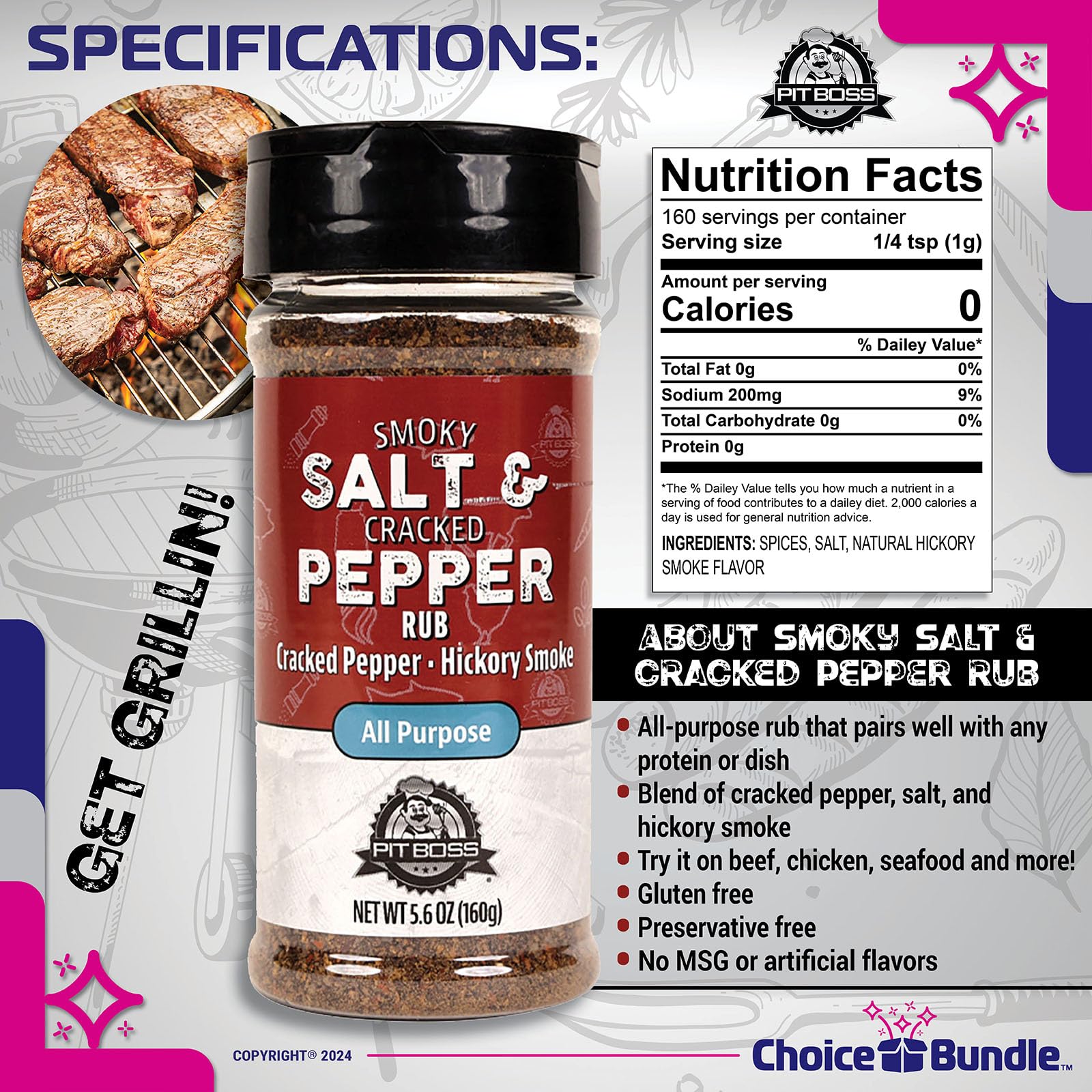 Key Features:- Includes 2 bottles of Pit Boss Smoky Salt & ed Pepper Seasoning Rub.