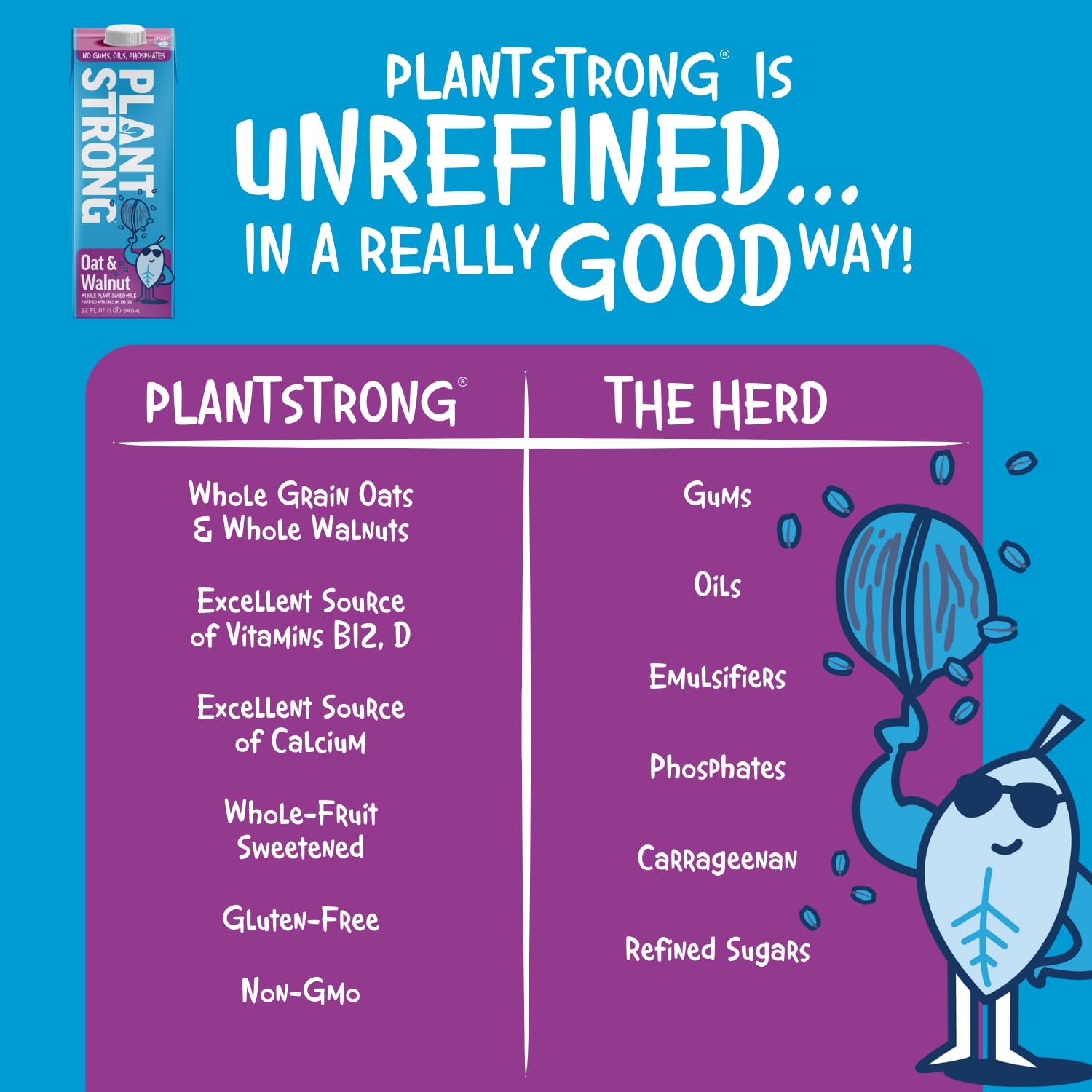 View comparePLANTSTRONG Oat & Walnut Milk 32oz (6 Pack) - NON-GMO - Plant Based, Vegan - Gluten Free Dairy Free - Shelf Stable - Lactose Fre