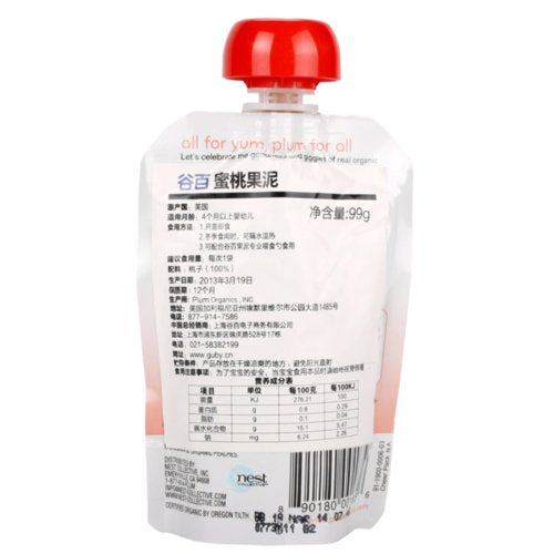 Q: Does this baby food contain any allergens?A: Plum Organics Baby Stage 1 Food, Just Peaches is made from simple ingredients with no added allergens like dairy, nuts, or gluten. However, always check the label for updated ingredient information.