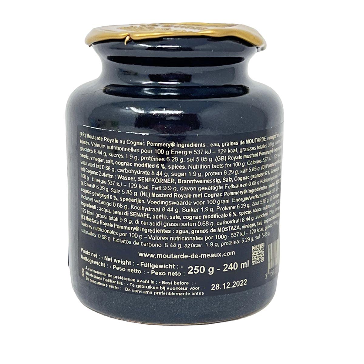 • Q: What is the size of the jar and how much does it weigh? A: The Pommery Moutarde Royale au Cognac is available in an 8 oz jar, which weighs approximately 250 grams, making it a convenient size for home use or gifting.