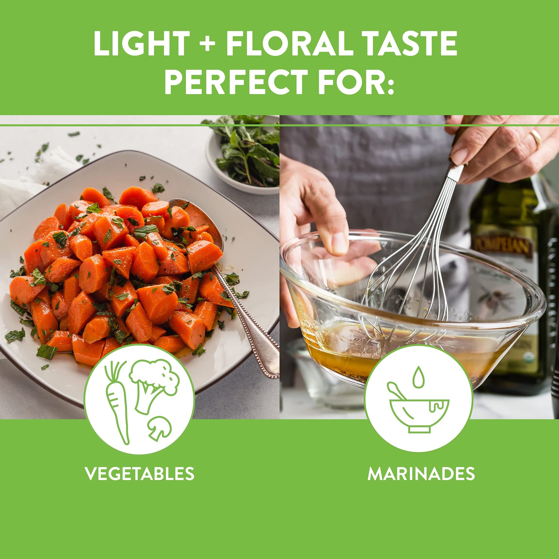 Q: What makes Pompeian Balsamic Vinegar different from other vinegars?A: Pompeian Balsamic Vinegar is expertly crafted by The Olive Oil People, ensuring a 100% farmer-crafted quality that enhances its flavor profile, making it distinctively light and floral compared to other vinegars.