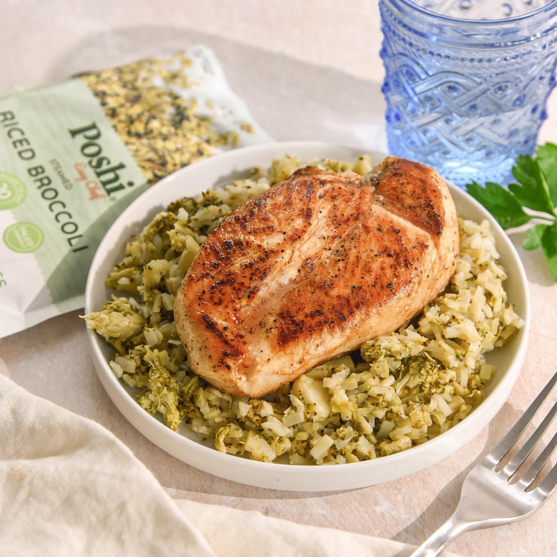 Q: How do I prepare Poshi Riced Broccoli?A: Poshi Riced Broccoli is ready-to-eat, requiring no preparation. You can enjoy it directly from the pouch or heat it in the microwave for a warm meal. It's a convenient option for quick meals on-the-go.