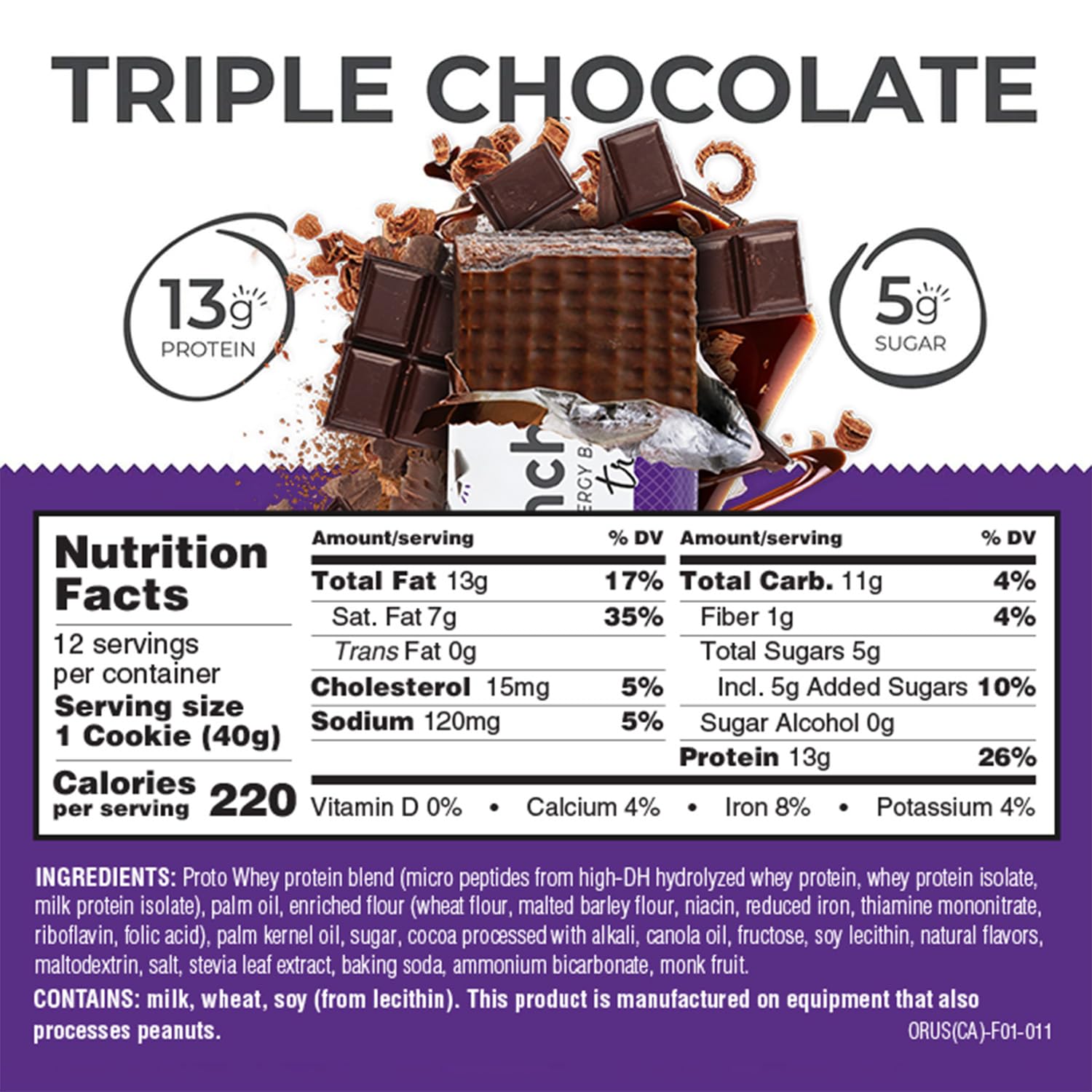 Power Crunch Protein Wafer Bars, High Protein Snacks with Delicious Taste, Triple Chocolate, 1.4 Ounce (12 Count)