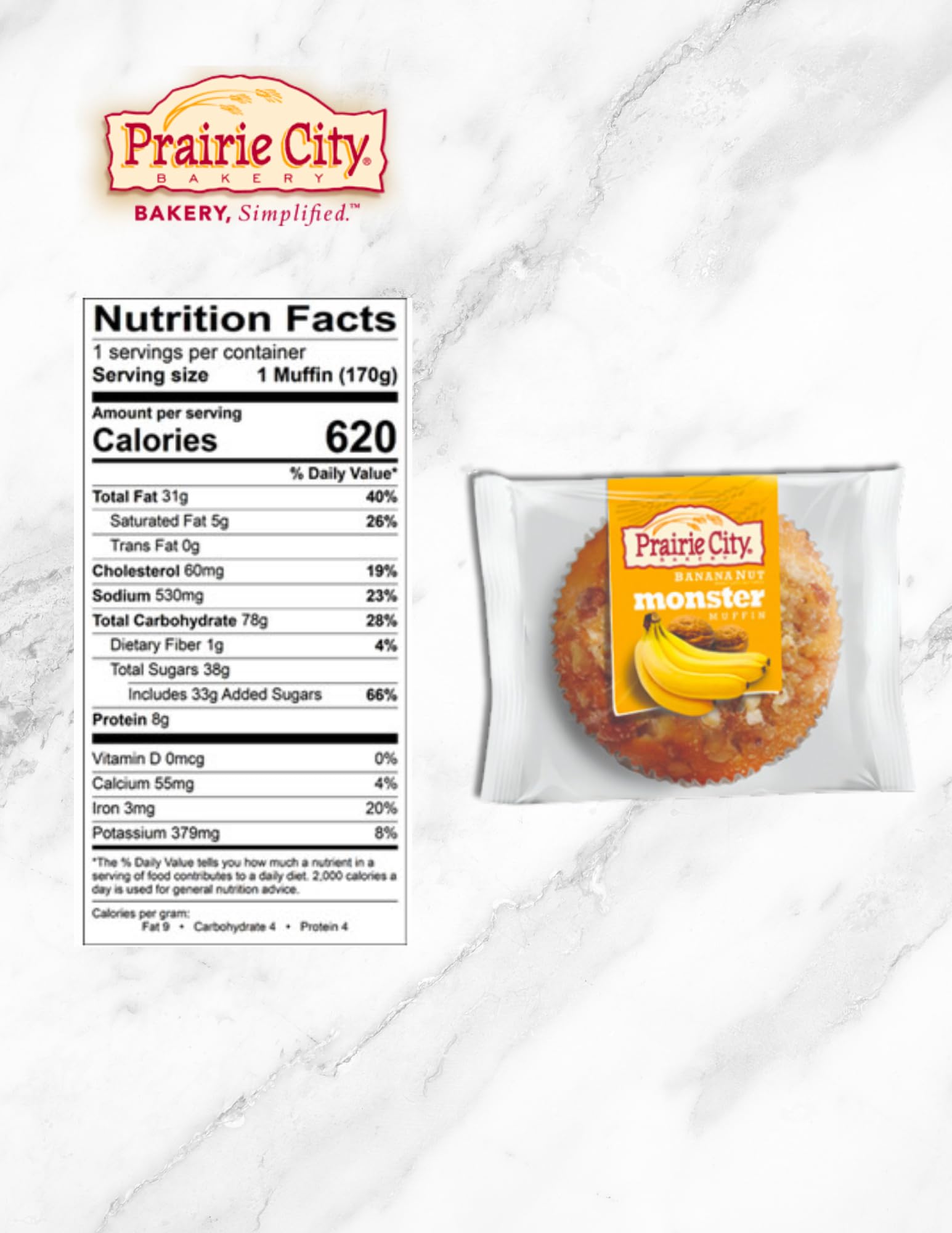 Discover The Ultimate Grab-And-Go Delight With Prairie City Bakery'S Monster Muffins. Crafted For Those Who Crave Monster-Sized Quality In A Convenient Package, These Muffins Are A Fusion Of Taste And Convenience. Bursting With Real Nuts, Genuine Chocolate, And Farm-Fresh Eggs, Every Monster Muffin Promises An Extraordinary, Mouthwatering Experience. With A Delectable Array Of Flavors Including Banana Nut, Blueberry, And Chocolate Chip, There'S A Monster Muffin To Tantalize Every Taste Bud. Satisfy Your Sweet Cravings And Elevate Your Snacking Experience With These Sumptuous And Hearty Muffins, Brought To You By Prairie City Bakery.