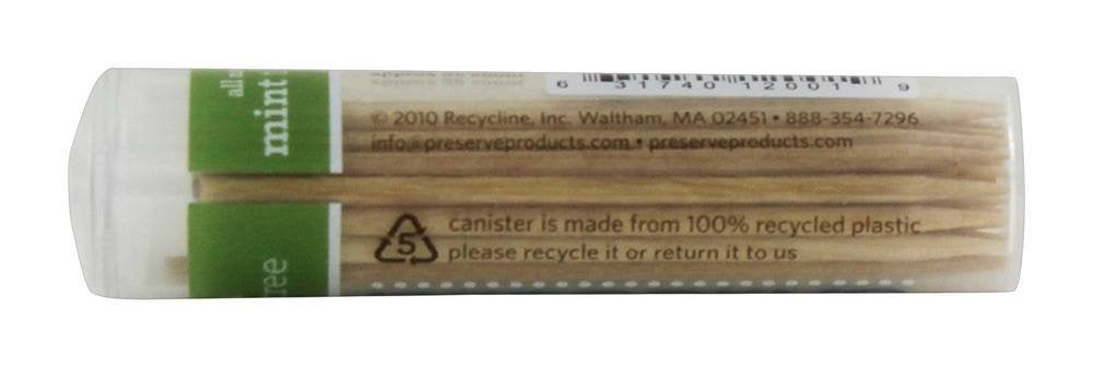 Preserve flavored toothpicks mint tea tree. Description: freshens breath, teeth and gums healthy. Made of sustainably harvested birch wood grown in the usa. Flavored with natural oils. Convenient carrying case made of 100% recycled plastic. Using a toothpick after a meal freshens your breath and keeps tooth decay at bay. With preserve flavored toothpicks, it can also be delicious habit. We use spicy, all-natural oils for a big burst of flavor. Our mint with tea tree flavor contains peppermint, spearmint, menthol and tea tree oils, while cinnamint includes cinnamon, peppermint, menthol, wintergreen and clove. The toothpicks also meet our high environmental standards. They are manufactured from sustainably harvested birch grown in the usa, and packaged in a pocket-sized canister made from 100% recycled plastic. Disclaimer: these statements have not been evaluated by the fda. These products are not intended to diagnose, treat, cure, or prevent any disease.