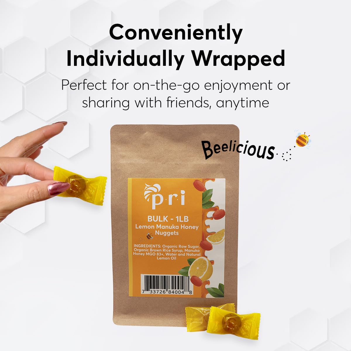 Satisfy Your Sweet Tooth With Pri'S Manuka Honey Nugget Treats! Individually Wrapped For Convenience, They Are Perfect For On-The-Go Or For Sharing. The All Natural Ingredients Include Energy And Immunity Boosting Manuka Honey And Are Made With Organic Ingredients. No Artificial Ingredients Or Corn Syrups.