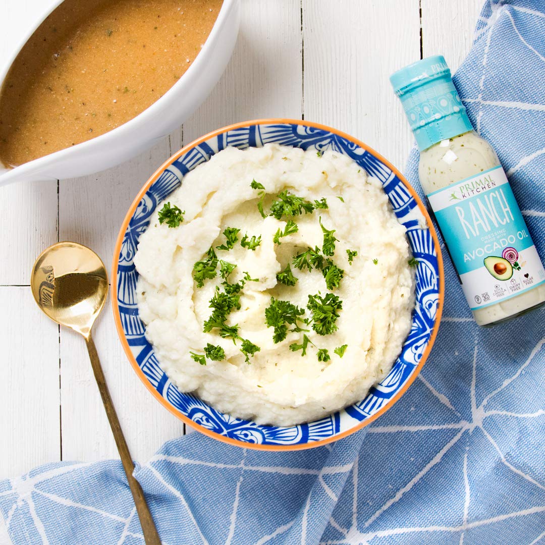Q: What are the main ingredients in Primal Kitchen Ranch Dressing?A: Primal Kitchen Ranch Dressing is crafted with premium ingredients such as avocado oil and Certified Humane cage-free eggs. It contains no dairy, cane sugar, corn syrup, or artificial sweeteners, ensuring honest and delicious flavor.
