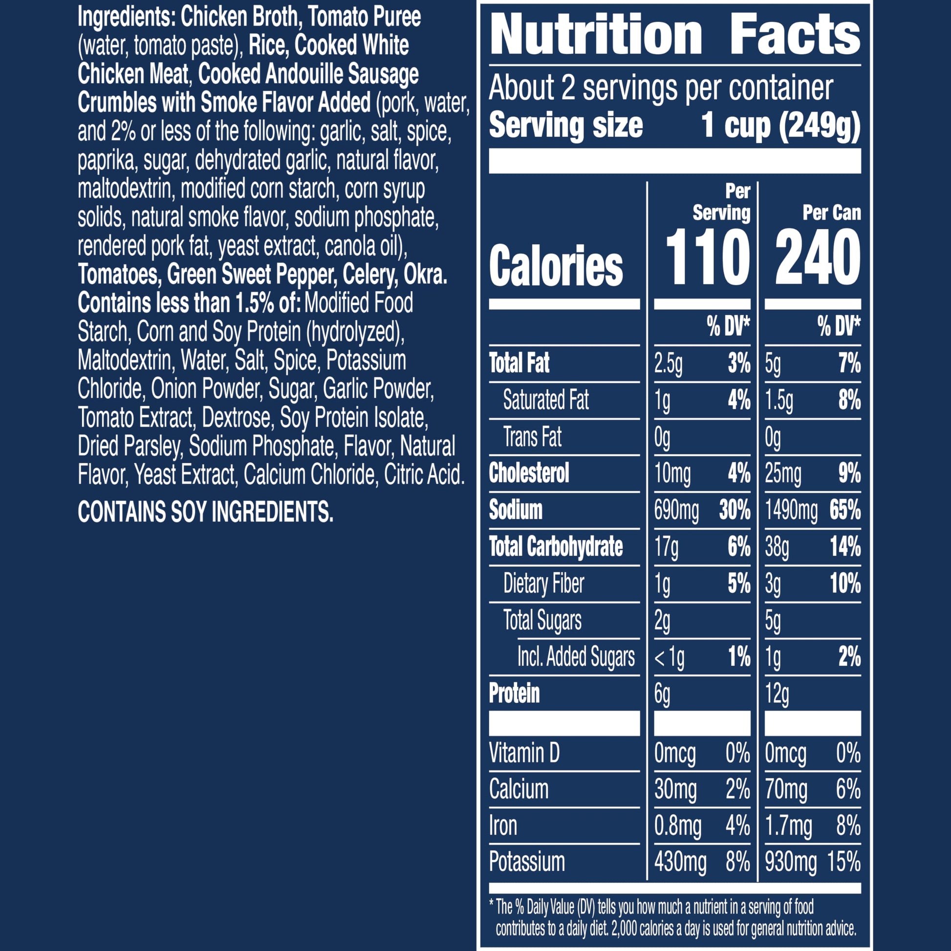 Q: What are the main ingredients in Progresso Chicken & Sausage Gumbo?A: The main ingredients include chicken, zesty andouille sausage, rice, and various spices that create the smoky and savory flavor profile of the gumbo.