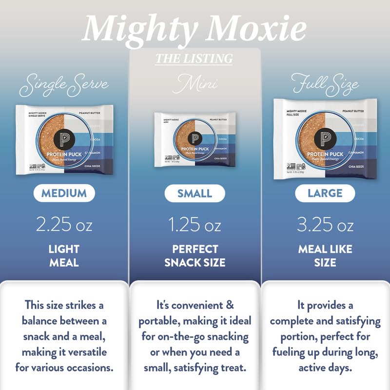 Protein Puck Vegan Plant based Protein Bar - Natural Healthy Snack Bars, 12 Count, 1.34oz Mini, Gluten Free, Dairy Free, No GMO, Kosher - Mighty Moxie - Cocoa, Cashew, Cinnamon, Sport Nutrition