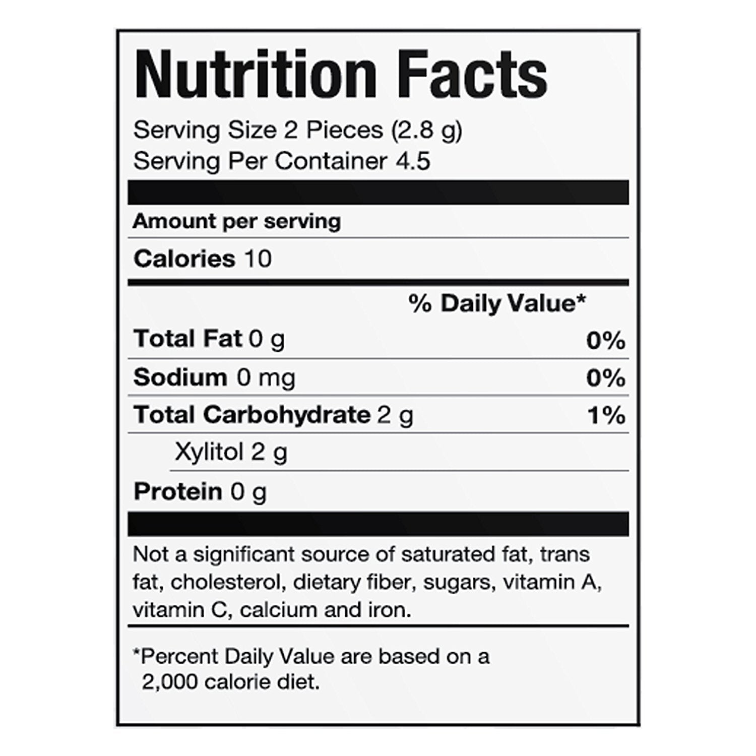 Q: What are the main ingredients in PUR 100% Xylitol Chewing Gum?A: PUR 100% Xylitol Chewing Gum is sweetened exclusively with 100% xylitol, making it a diabetic-friendly option. It is free from aspartame and artificial sweeteners, and is made with high-quality, natural flavors.