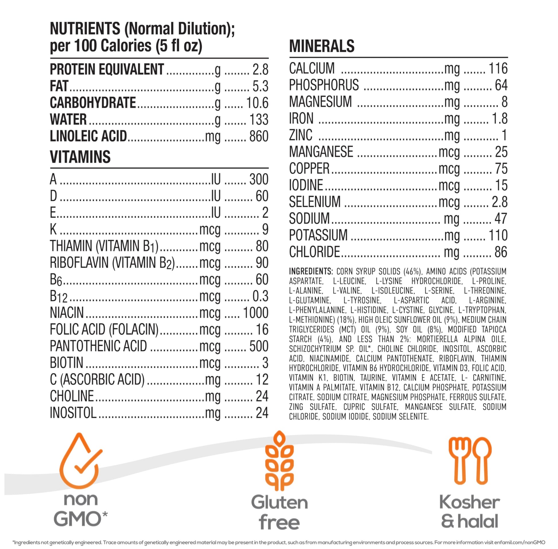 PurAmino is a hypoallergenic, iron fortified, amino acid based baby and toddler formula used for infants and toddlers with severe cows milk protein allergies, and other food allergies. It also is suitable for conditions such as protein maldigestion, malabsorption/chronic diarrhea, short bowel syndrome and eosinophilic esophagitis. It contains omega 3 DHA and ARA, important fatty acid nutrients that provide brain support and eye development for your baby. PurAmino can provide a sole source of nutrition for infants up to age 6 months and provide a major source of nutrition for toddlers through 24 months of age, when indicated. Normally, in feeding infants, gradual introduction of solid foods after 4-6 months of age is an important developmental as well as nutritional step. In cases of severe and multiple food allergies or intolerances, PurAmino is sometimes continued as a milk substitute in the diet of children. This and similar supplemental use of PurAmino in the diet beyond 24 months of age may make a significant contribution to maintenance of good nutrition. PurAmino is created by the maker of Nutramigen-the #1 recommended brand* for managing infants who are allergic to cows milk protein. By pediatricians who recommend a specific formula. *Enfamil is the #1 pediatrician recommended brand of Infant Formula - QuintilesIMS, using the ProVoice Survey fielded from October 1, 2016 to September 30, 2017.