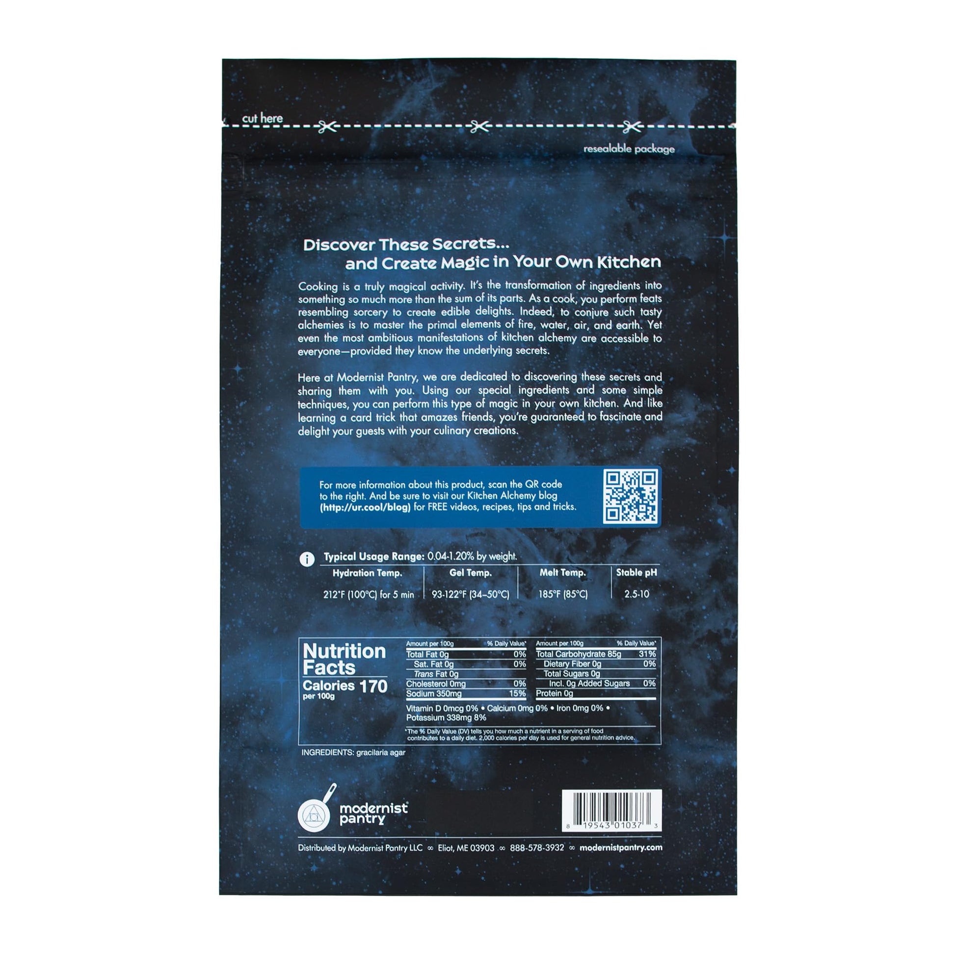 Super Agar is made from high gel strength Gracilaria Algae, which means that you can use less of it to get the same gelling power as inferior brands. 100% Food Grade (beware cheap industrial grade products not meant for human consumption)