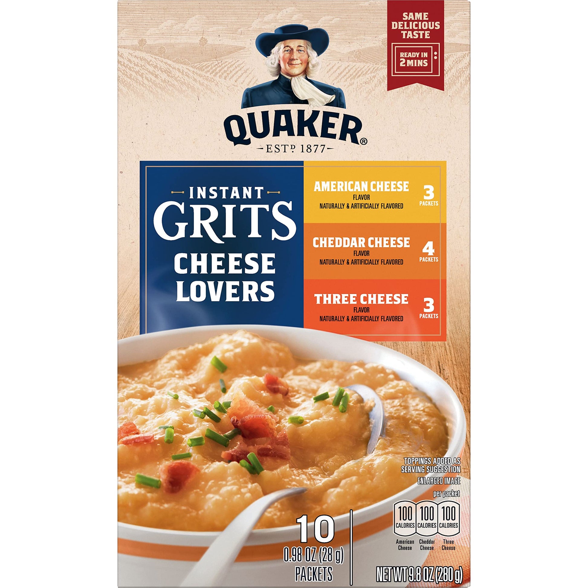 The savory combination of American, Cheddar and Three Cheese flavors makes Quaker Instant Grits the perfect addition to your favorite meal. Theyre delicious and ideal for your action-packed lifestyle-it only takes a minute to have them on the table.