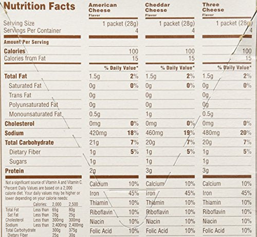Quaker Instant Grits are ready in a matter of minutes, so you can prepare tasty and creamy grits whenever the craving hits. Enjoy a savory bowl full with breakfast, or make up a cheesy side dish for lunch or dinner. Choose from American, Cheddar, and Three Cheese flavors. In addition to a creamy taste, Quaker Instant Grits also offer a good source of calcium and iron. See nutrition information for sodium content. These individual packets of Quaker Instant Grits are quick and easy to prepare. Simply empty the packet contents, add hot water, and stir. You can have a warm and hearty serving of creamy grits in just minutes--anywhere there s hot water.
