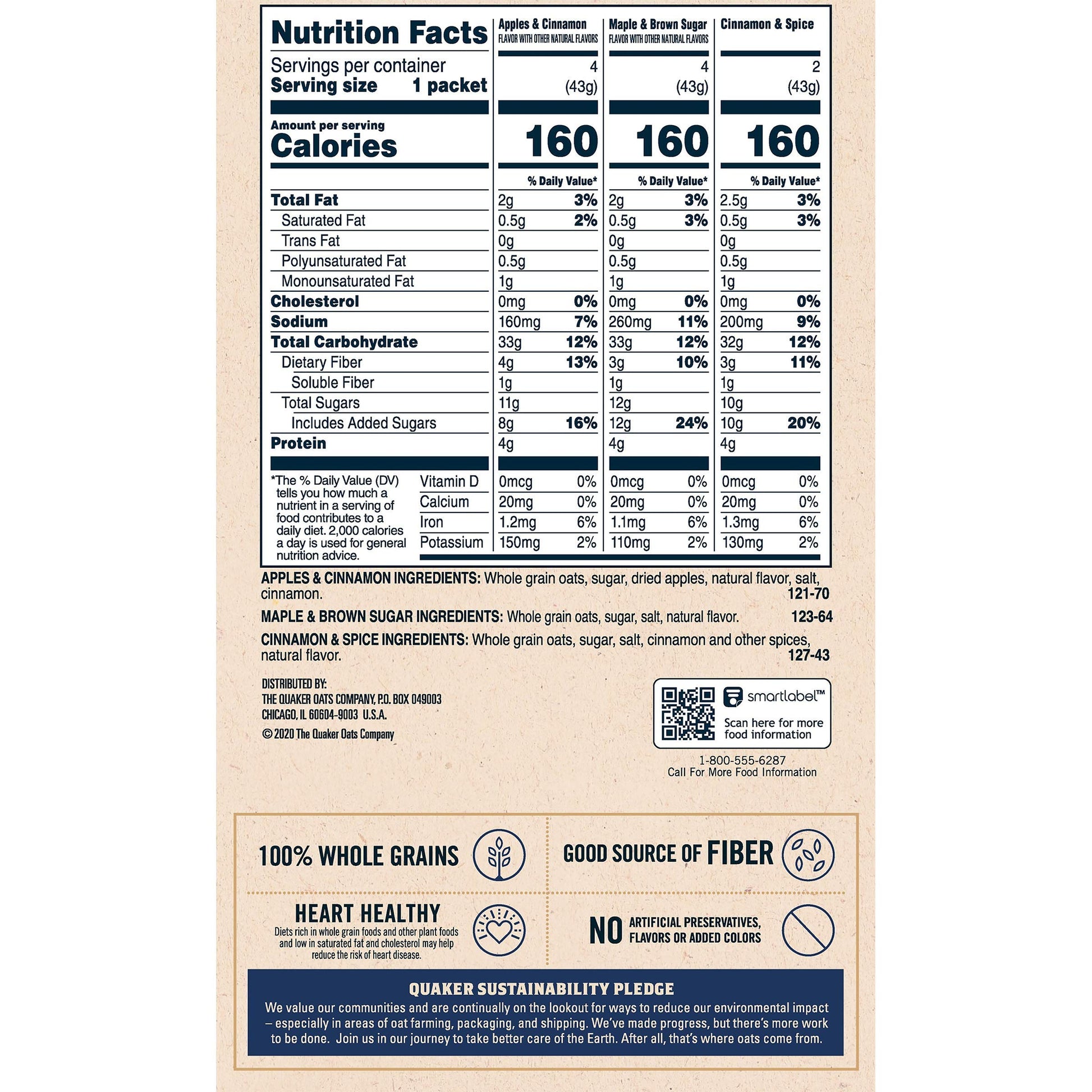 Crave a little variety now and then? So do we. Thats why we offer Quaker Instant Oatmeal Flavor Variety Pack featuring Maple & Brown Sugar, Apples & Cinnamon and Cinnamon & Spice flavors. With so much delicious variety, the only problem is deciding which one youll have.
