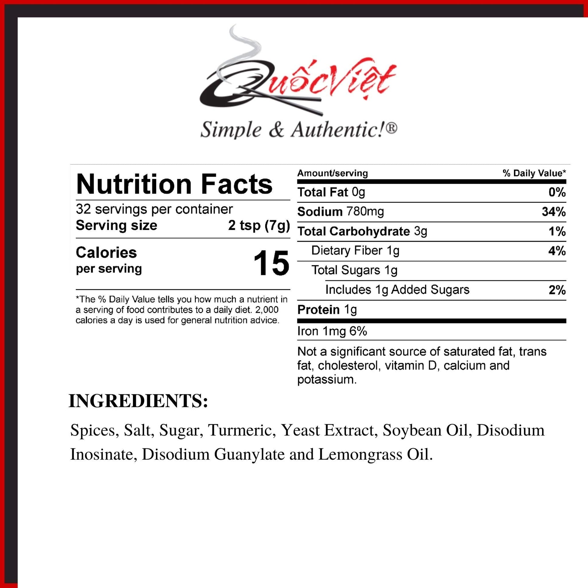Q: What is Quoc Viet Foods Curry Soup Base made of?A: Quoc Viet Foods Curry Soup Base is crafted with natural ingredients and contains no preservatives or monosodium glutamate (MSG). This ensures an authentic and flavorful experience in every bowl.