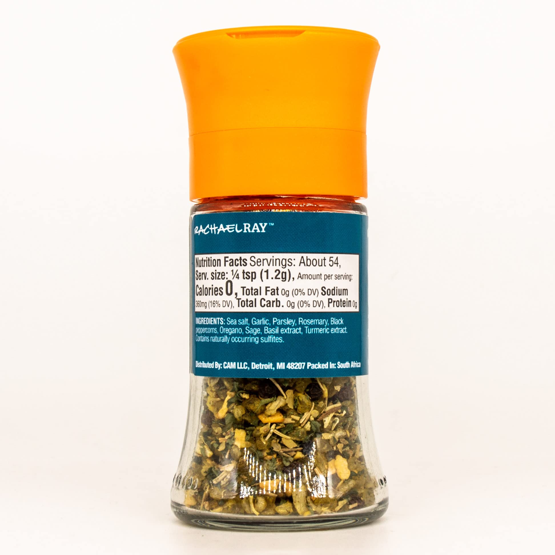 Bold Flavor- Rachael Ray'S Garlic & Herb Grinder Contains Sea Salt, Garlic, Parsley, Rosemary, Black Peppercorns, Oregano, Sage, Basil Extract, Turmeric Extract | 100% Natural - Rachael Ray Grinders Are Filled With Premium Seasonings That Are Non-Gmo And Free Of Artificial Flavors, Ingredients And Additives. | Chef Approved - Curated By Rachael Ray Herself, These Easy-To-Use, Ergonomic Grinders Will Add A Pop Of Flavor To Any Dish!