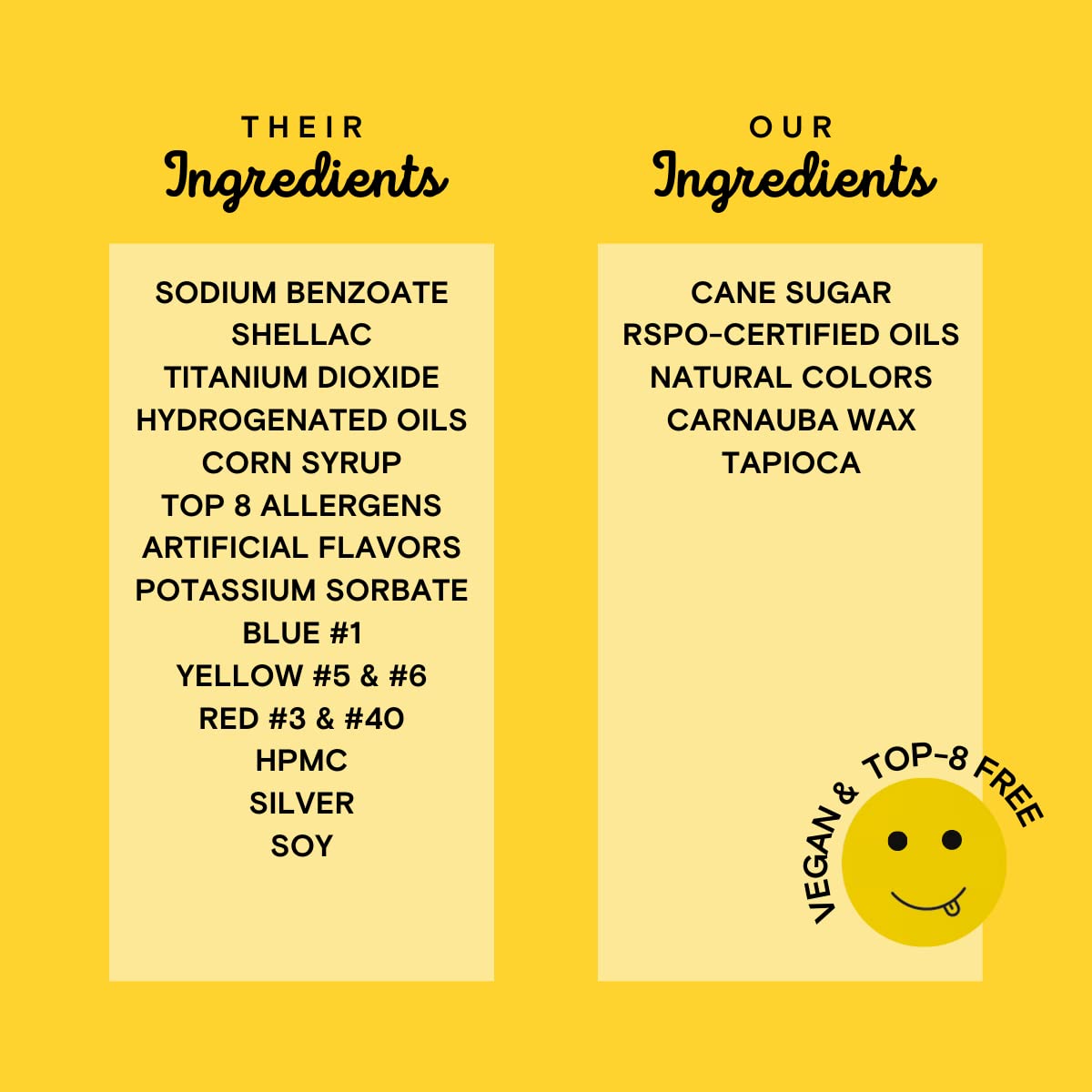 The Healthiest Sprinkles: Supernatural Crunchies Are A Subtly Sweet, Pleasantly Crunchy Sprinkle Made With Better Ingredients Like Plant-Based Colors And Tapioca. | Colors From Plants: Artificial Dyes Can Cause Allergies And Hyperactivity. So We Vividly Color Our Sprinkles With Natural Ingredients, Instead (Yay). | Healthier Baking: Modern Chefs Like To Keep Controversial Ingredients Out Of Their Kitchens. So We Avoid Questionable Stuff Like Soy, Titanium Dioxide, And Common Allergens. | No Confectioner