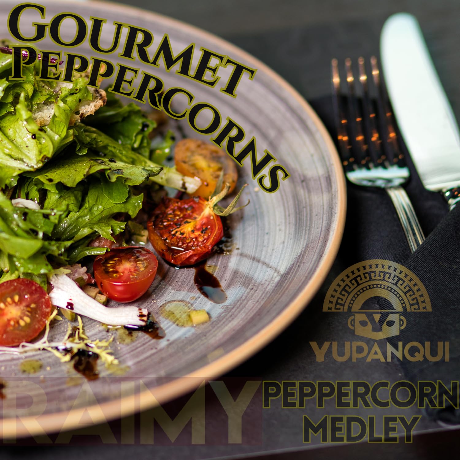 - Q: What is the unique blend in the Rainbow Peppercorns Grinder? A: The Rainbow Peppercorns Grinder features a unique blend of seven gourmet peppercorns, including vibrant colors such as burgundy, black, red, white, and orange. This organic medley is crafted by the Yupanqui family, ensuring a rich flavor and enticing aroma that elevates any dish.