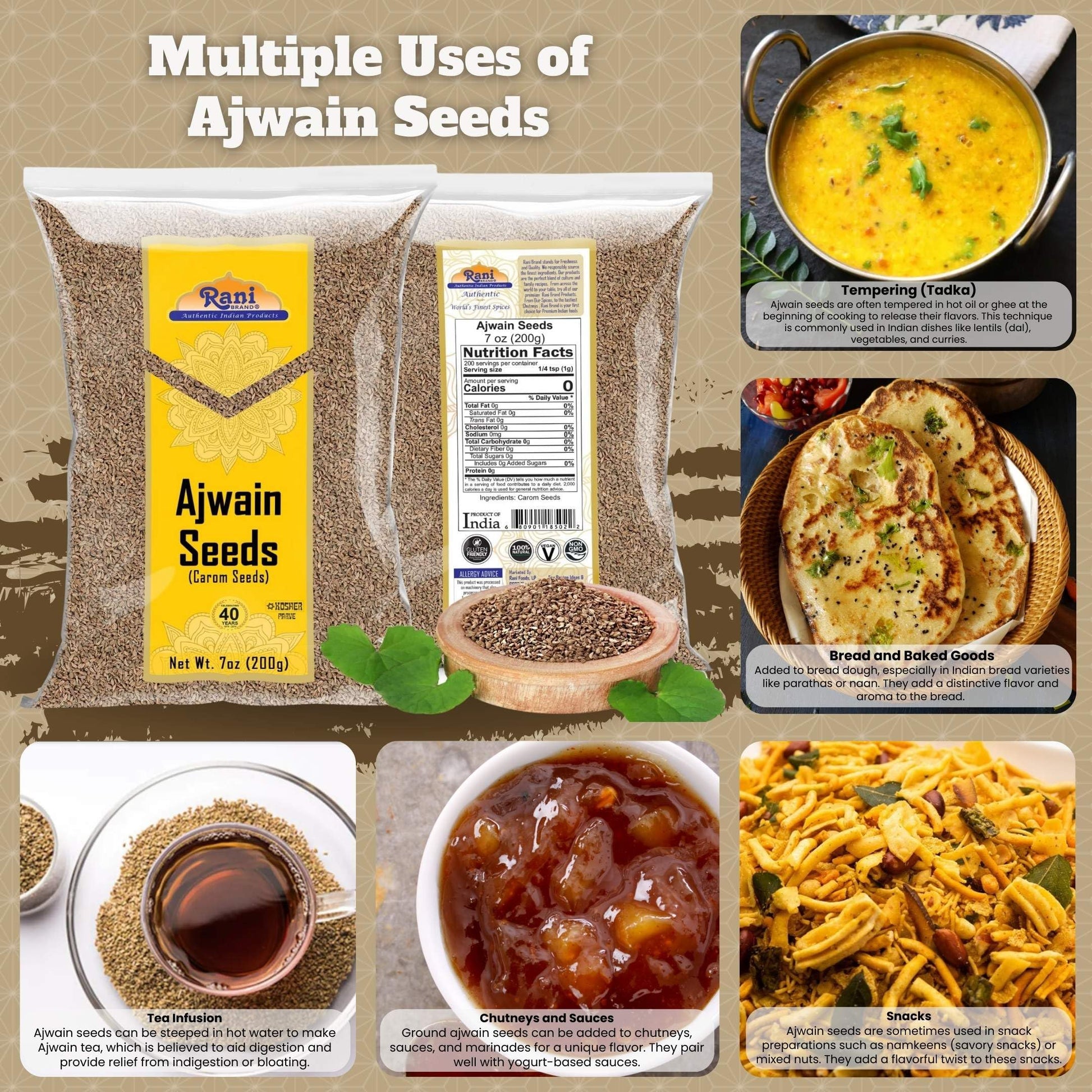 - Q: What are Rani Ajwain Seeds used for? A: Rani Ajwain Seeds, also known as Carom or Bishops Weed, are commonly used in Indian cooking. They add a distinct flavor to breads, pickles, and soups, and can also be used in spice blends.