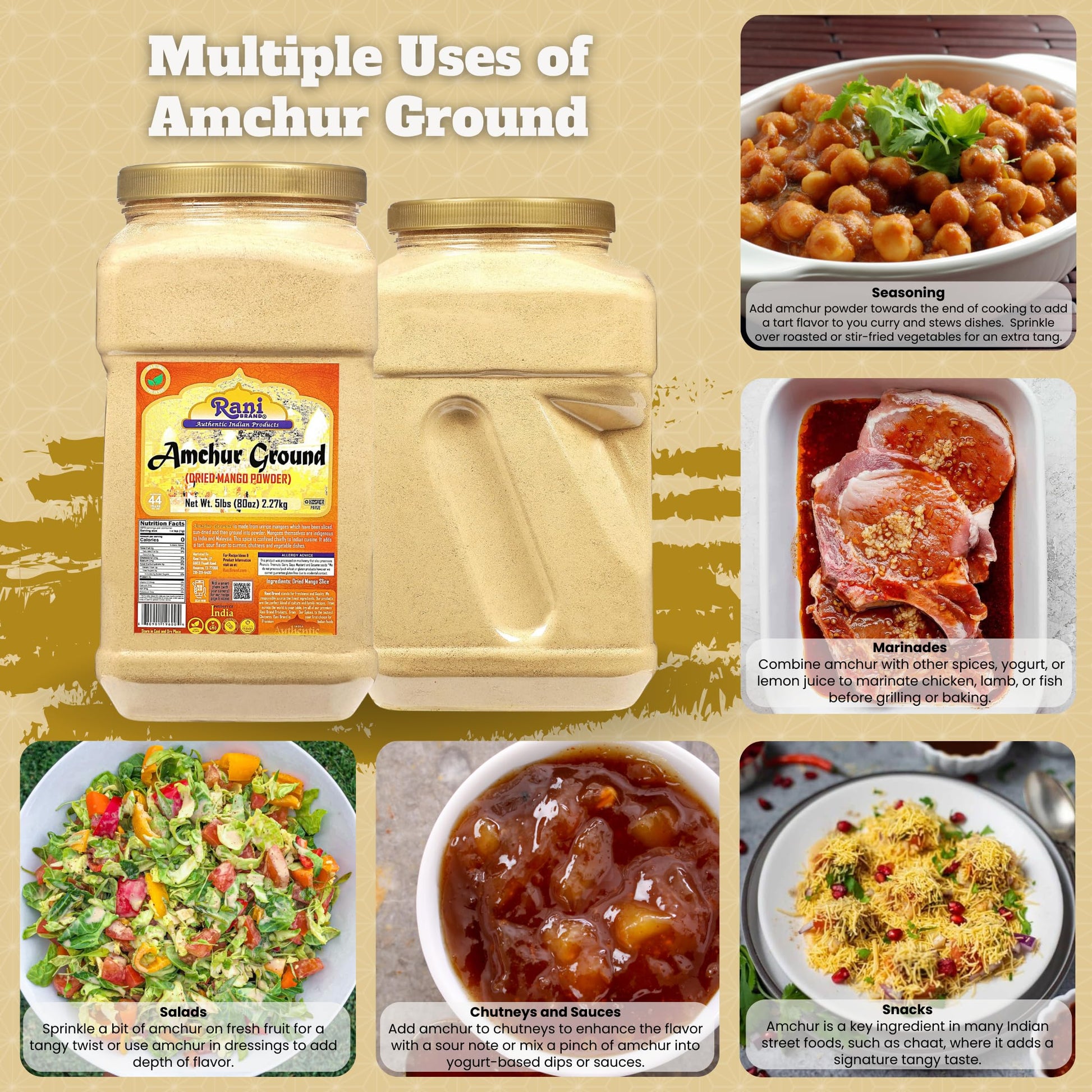 Rani Amchur (Mango) Ground Powder Spice 80Oz (5Lbs) 2.27Kg Bulk Pet Jar ~ All Natural, Indian Origin | No Color | Gluten Friendly | Vegan | Non-Gmo | Kosher | No Salt Or Fillers