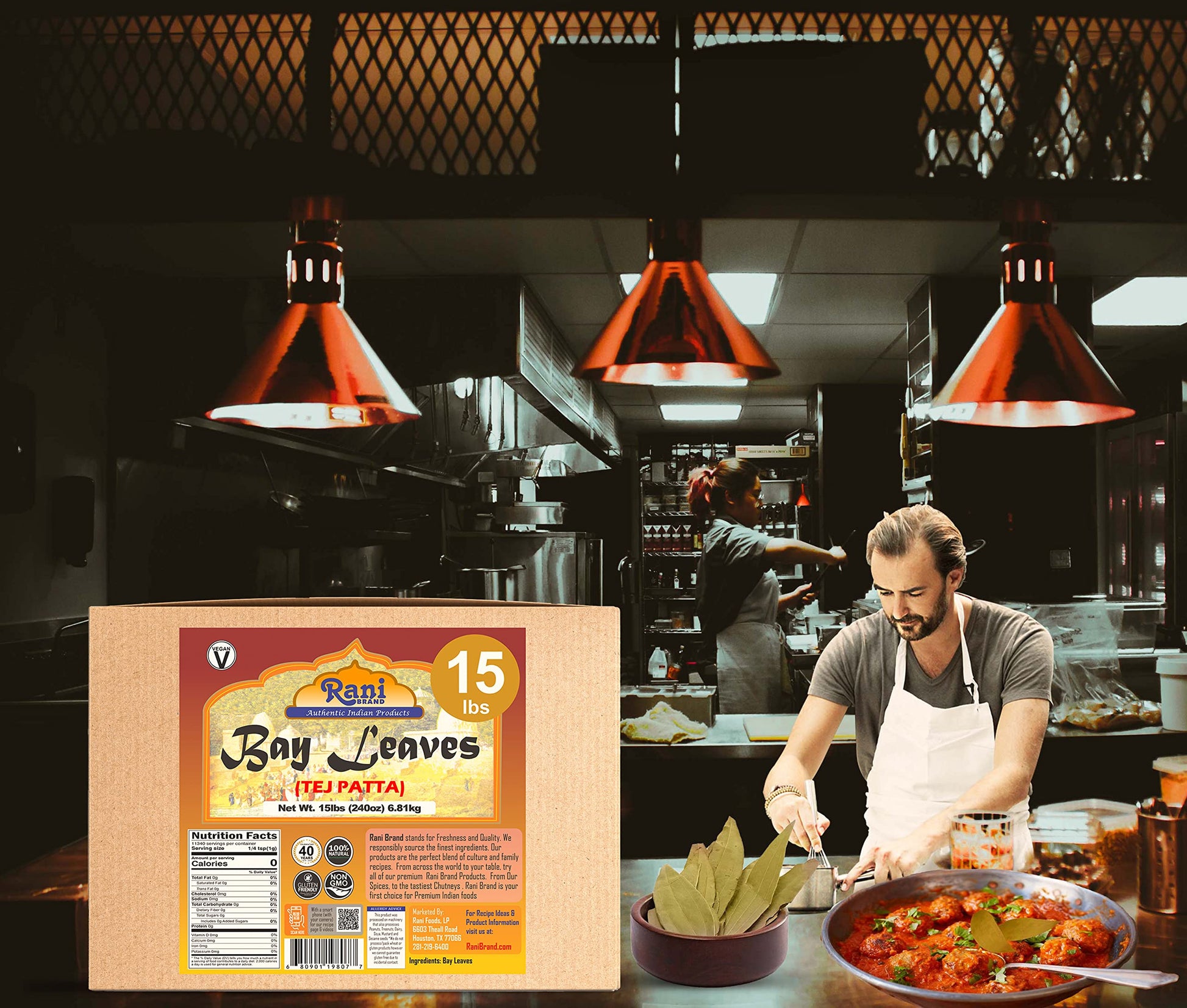 Rani Bay Whole Leaf (Leaves) Spice Hand Selected Extra Large 240Oz (15Lbs) 6.81Kg Bulk Box ~ All Natural | Gluten Friendly | Non-Gmo | Vegan | Indian Origin (Tej Patta)