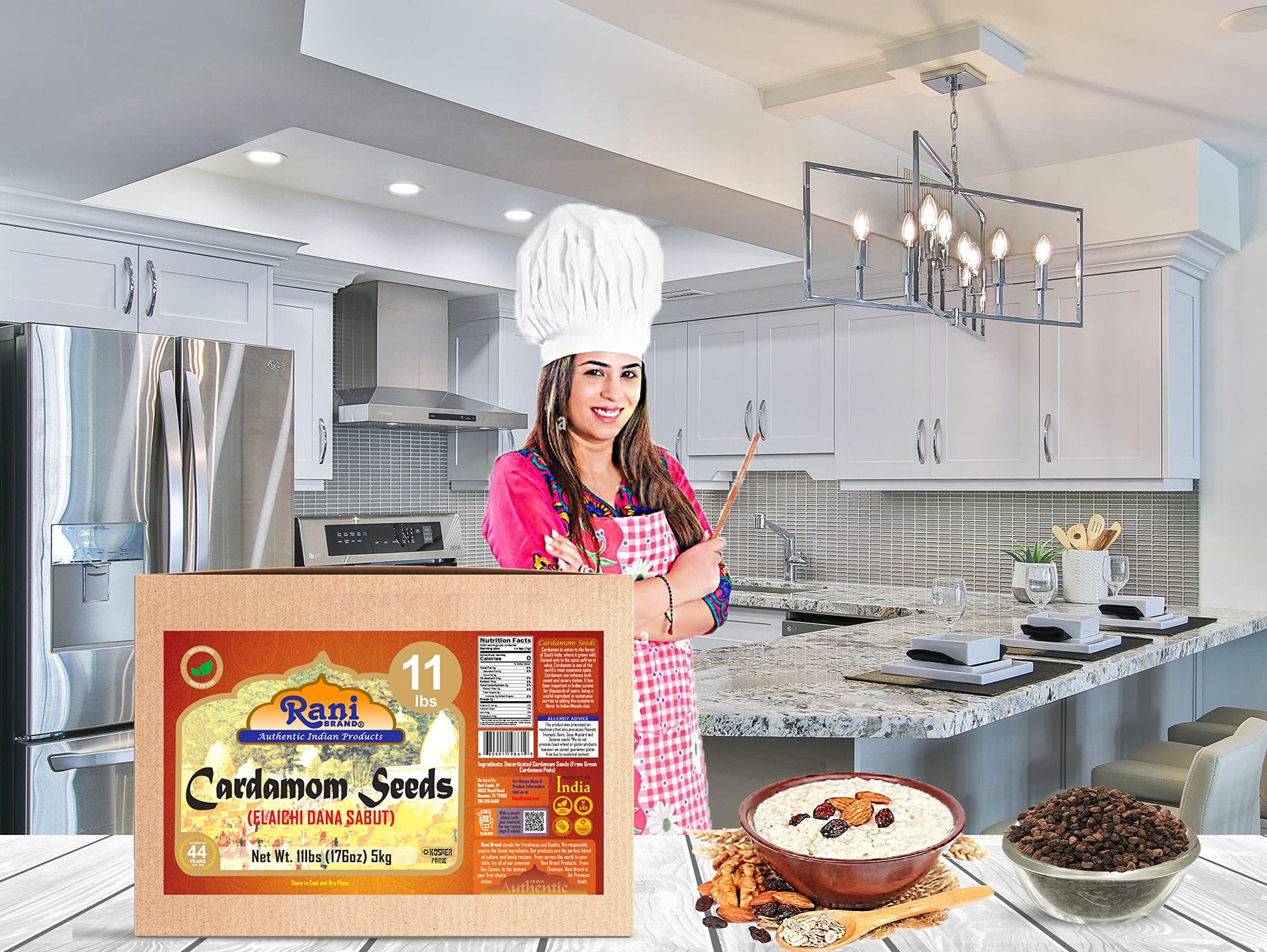 Q: What is the weight of the Rani Cardamom packaging?A: Rani Cardamom comes in a bulk box weighing 176oz (11lbs) or 5kg, making it ideal for frequent cooks or those wanting to stock up.