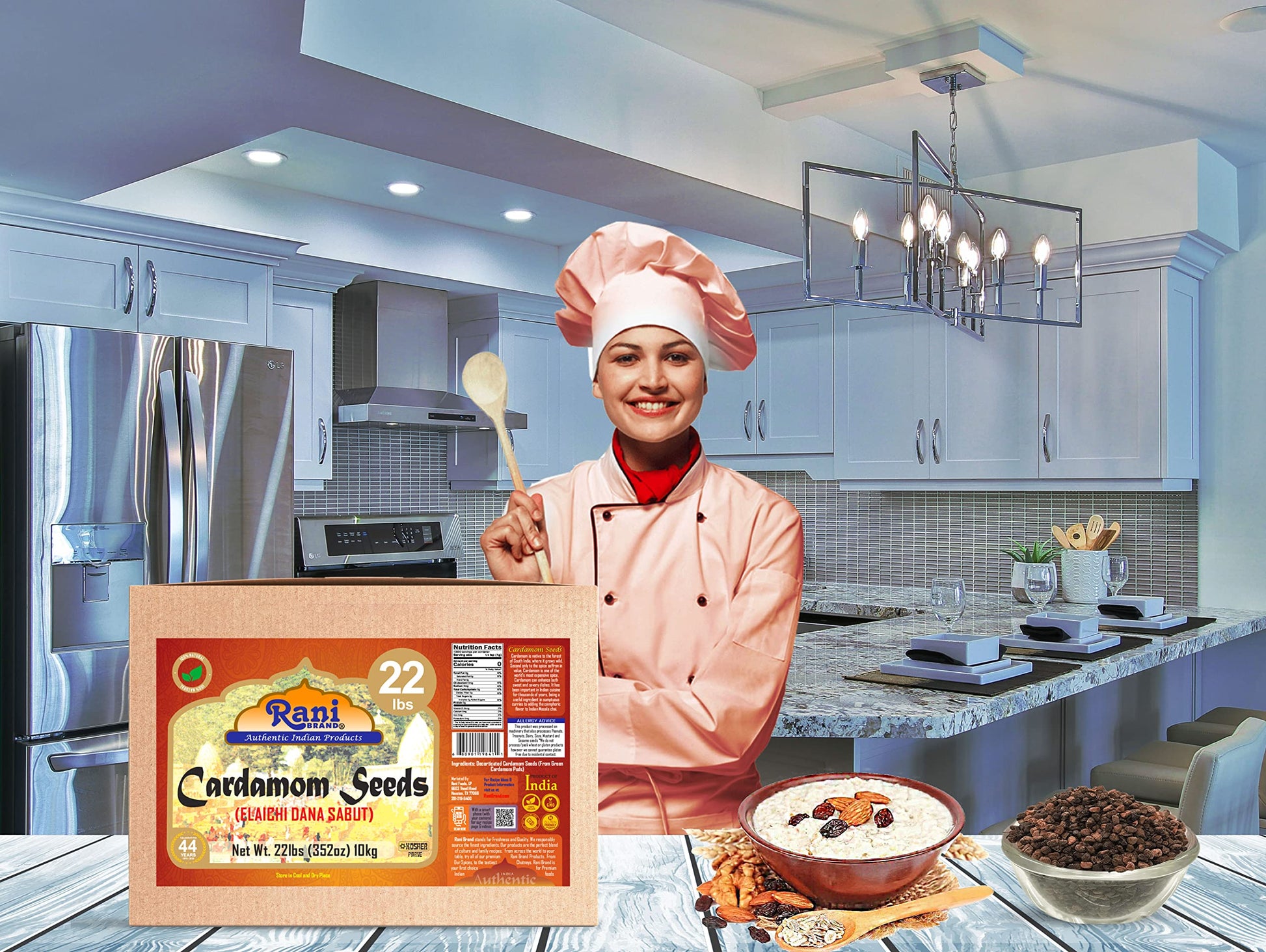 Q: What is the weight of the Rani Cardamom package?A: The Rani Cardamom Seeds come in a bulk box weighing 352 oz (22 lbs or 10 kg), making it perfect for both personal use and commercial cooking.