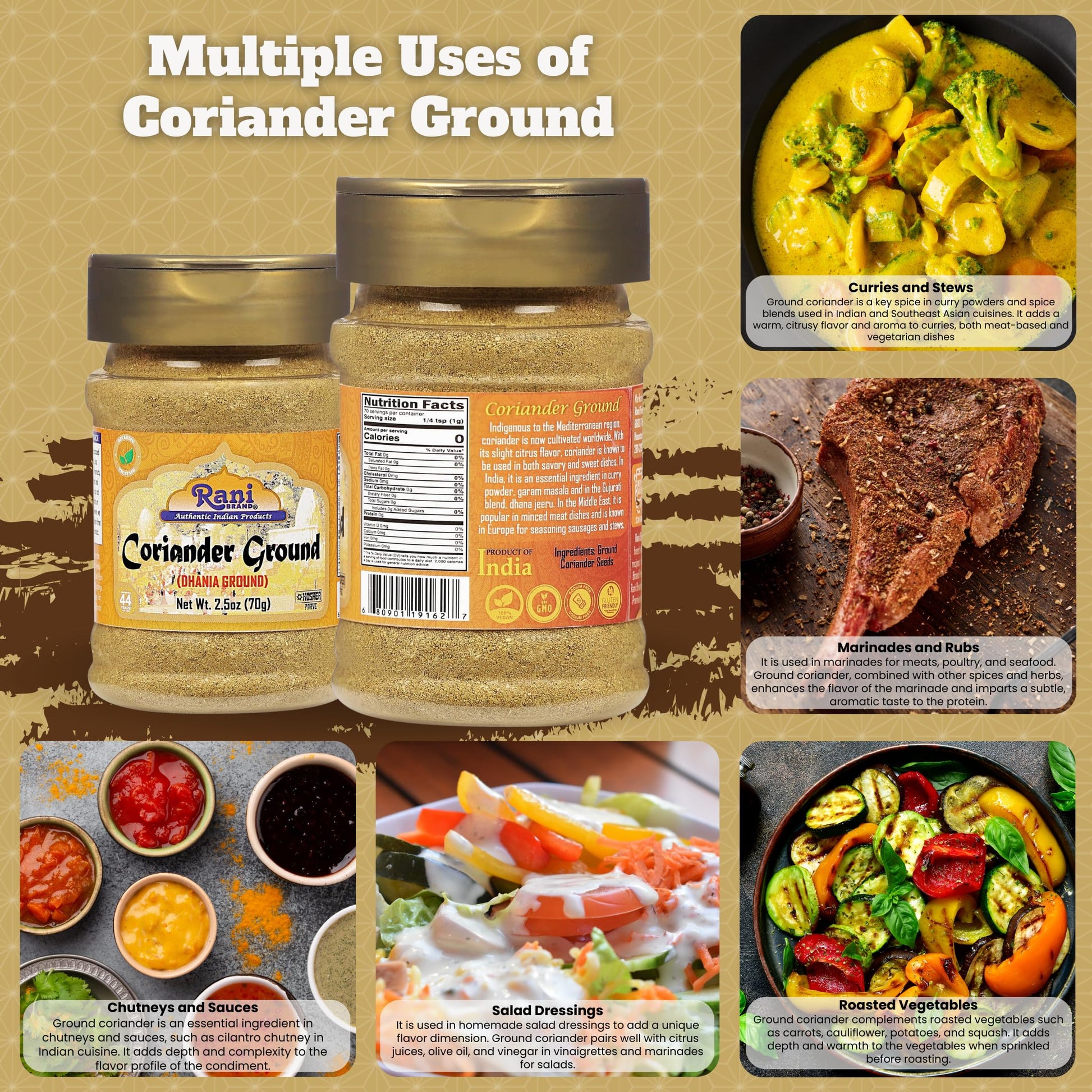 - Q: What is Rani Coriander Ground Powder used for? A: Rani Coriander Ground Powder is a versatile spice used in a variety of dishes, including curries, stews, and marinades. Its slightly citrus flavor enhances both savory and sweet recipes.