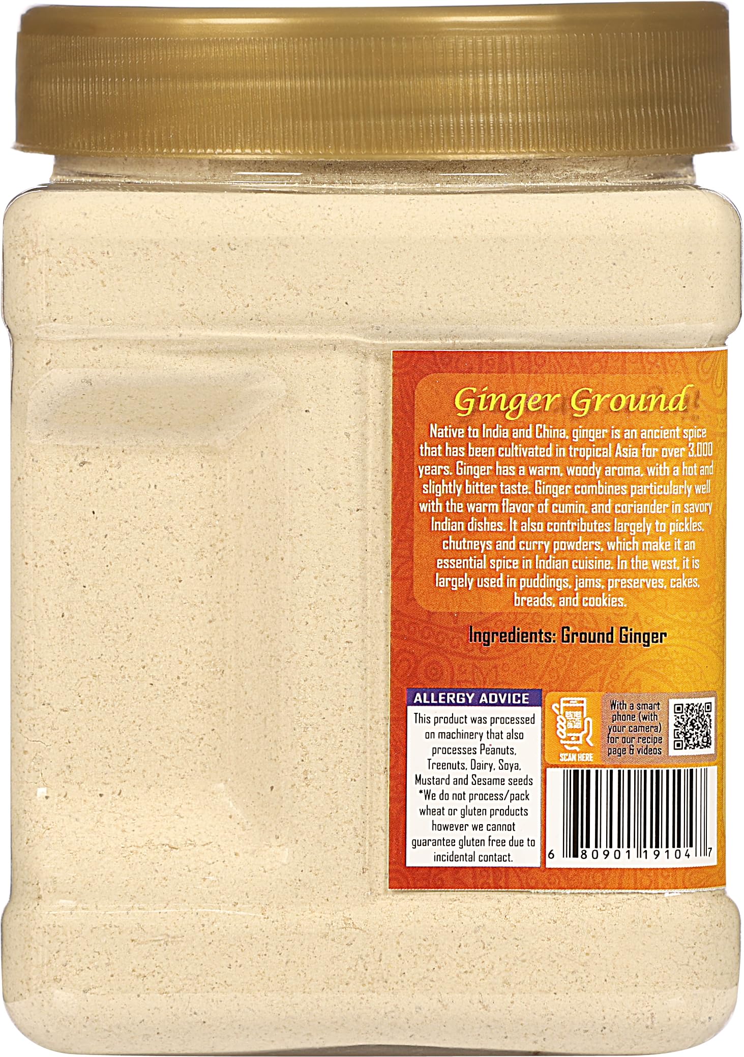GingerA Little History! Native to India and China, ginger is an ancient spice that has been cultivated in tropical Asia for over 3,000 years. Ginger has a warm, woody aroma, with a hot and slightly bitter taste. Ginger combines particularly well with the warm flavor of cumin, and coriander in savory Indian dishes. It also contributes largely to pickles, chutneys and curry powders, which make it an essential spice in Indian cuisine. In the west, it is largely used in puddings, jams, preserves, cakes, breads, and cookies. Product Type: Ground Powder Packaging: Plastic Jar Product of India Alternative Name (Indian) Adarak