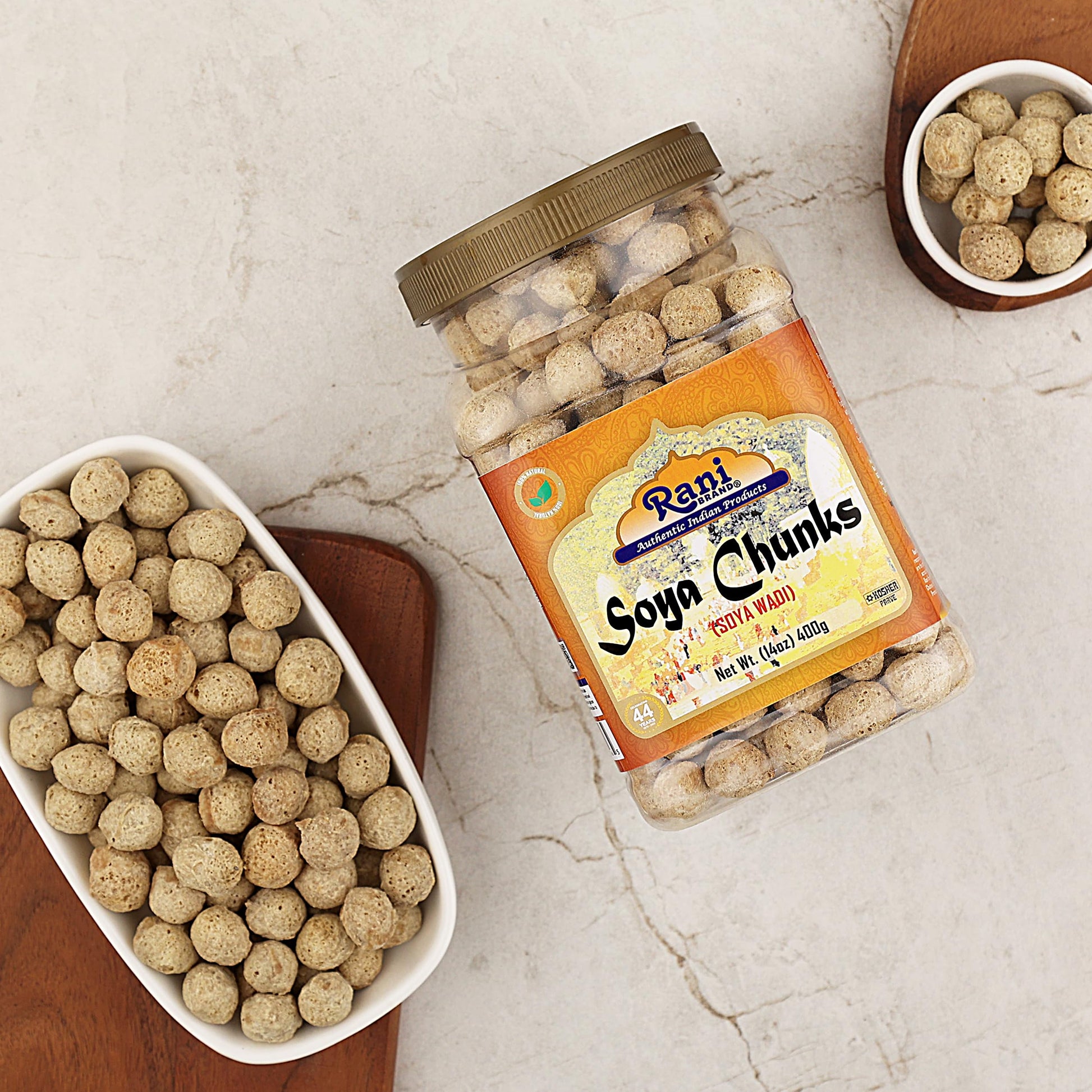 Q: How do I prepare Rani Soya Chunks?A: To prepare Rani Soya Chunks, simply soak them in water until they absorb moisture and expand to three times their size. They can be added to various dishes such as curries, burgers, or stir-fries.
