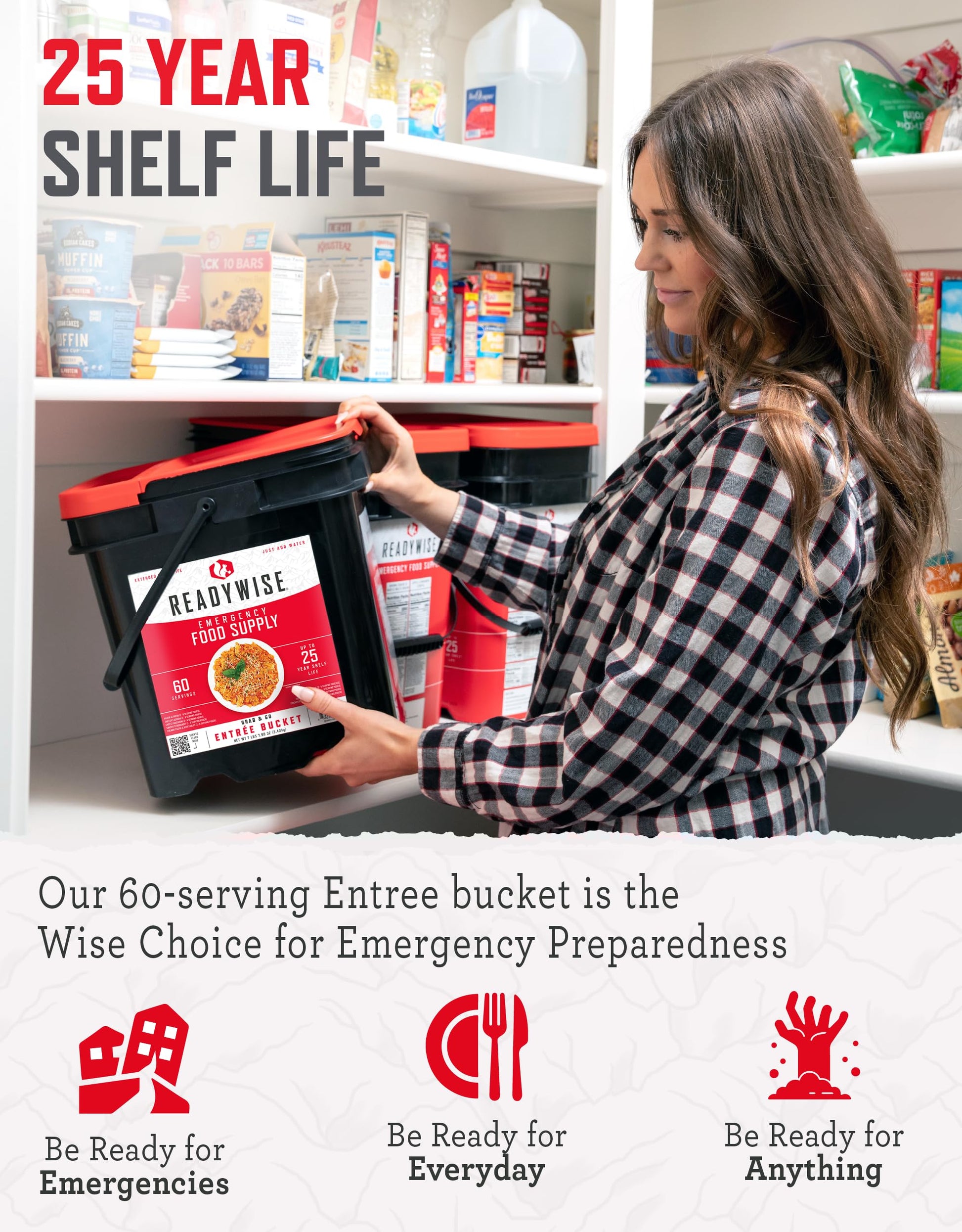 Readywise - Entr E Grab & Go Bucket, 60 Servings, Emergency, Mre Supply, Premade, Freeze Dried Survival Food For Hiking, Adventure & Camping Essentials, Individually Packaged, 25 Year Shelf Life