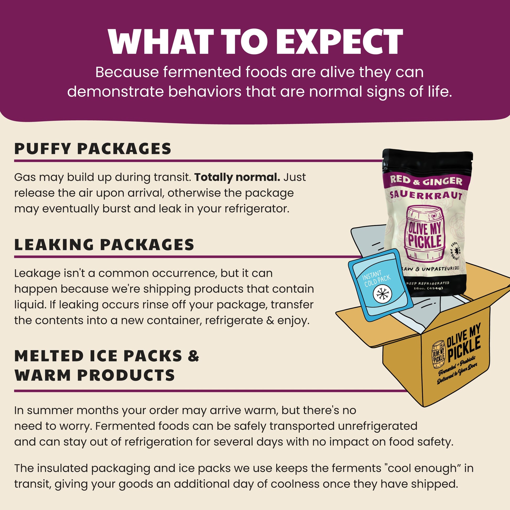 - Q: What makes Olive My Pickle's sauerkraut different from other brands? A: Olive My Pickle's sauerkraut is made with high-quality, organic ingredients and is unpasteurized to preserve beneficial probiotics. As a family-owned business operating since 2010, we are committed to fermentation and providing delicious, health-promoting foods.