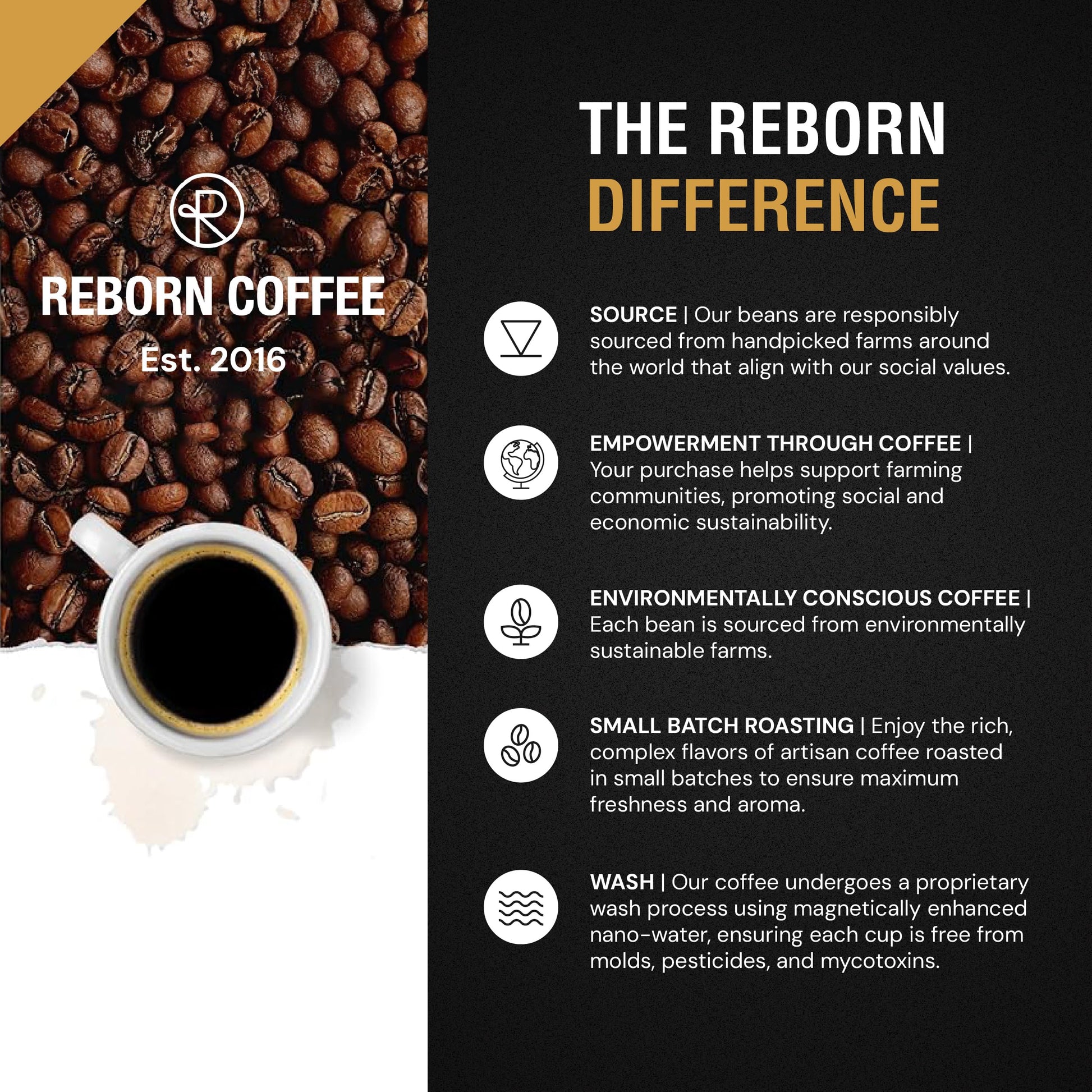 - Q: What is the size of the Reborn Coffee package? A: The Reborn Coffee comes in a 12-ounce package, providing enough whole beans for multiple brews while ensuring freshness and quality with each cup.