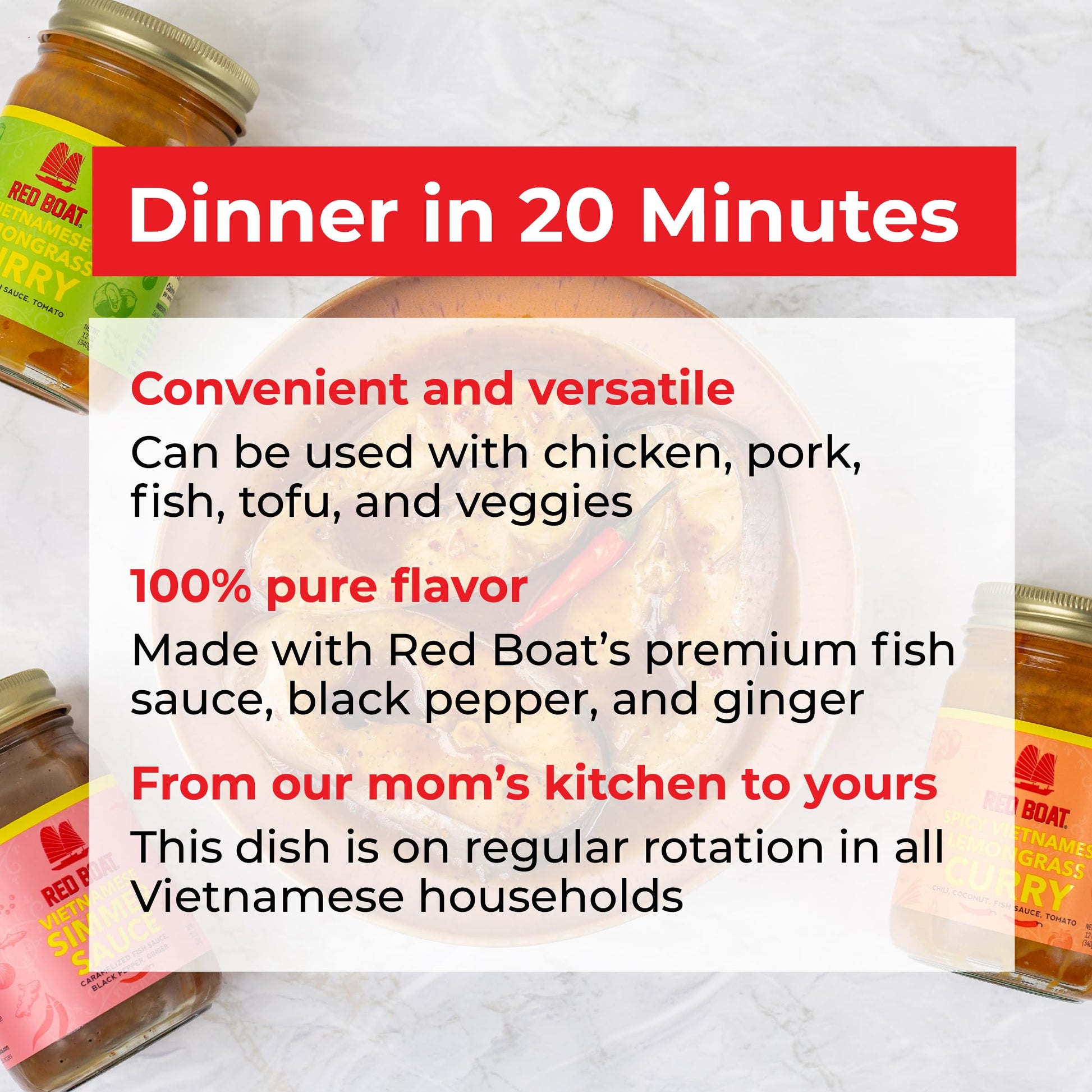 100% Pure Flavor: Made With Red Boat'S Premium Caramelized Fish Sauce, Black Pepper, Onions, And Ginger Family Owned: Our Founder, Cuong Pham, Started Red Boat Because He Couldn'T Find A Fish Sauce That Tasted Like Home In The Us. Over A Decade Later, The Brand Is Still Family Owned And Run. Makes Two Meals: One Jar Makes Two Delicious Meals For A Family Of Four. Serve With Rice And Your Favorite Vegetable.