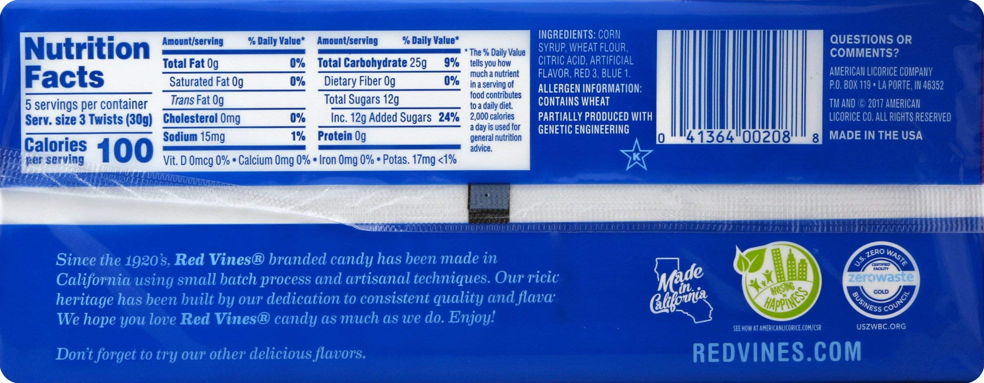 Family-Owned And Operated Since 1914, The American Licoricecompany Is Proud To Use Artisanal Candy-Making Techniques That Have Been Passed Down Through Five Generations. Made Using Small Batch Process, Red Vines Candy Holds A Prime Spot In The Hearts Of Candy Loving Kids And Adults Alike.American Licorice Company Is Committed To Improving Our Manufacturing Processes To Reduce Environmental Impact By Tracking Greenhouse Gas Emissions From Our Two U.S Facilities. We Purchase Carbon Offsets For Greenhouse Gas Emissions As Well As Invest In Green-E Energy Certified Renewable Energy Certificates That Are Sourced From Wind Energy Facilities In The Lower 48 States.We Also Support Our Local Communities By Investing In A Brighter Future. American Licorice Company Employees Contributed Over 2,000 Hours Of Volunteer Service Last Year And Donated More Than 20,000 Backpacks Full Of School Supplies Over The Last Six Years Through Our Partnership With The Kids In Need Foundation.Whether You Seek Out Nostalgic Candy Or A Treat Offering One Of The Latest Flavor Trends, Theres Something For Everyone. If You Love Classics, Theres Original Red, Grape Flavored, Or Our Traditional Black Licorice Twists. You Can Also Bulk Up Your Pantry With A Variety Of Twists, Bars, Bites, Whips, Superstrings, Or Twistettes. Try Red Vines Candy In A Resealable Pack For Snacks On-The-Go.