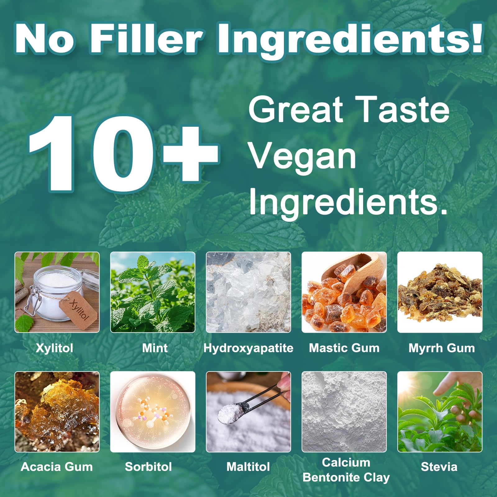 Our remineralizing chewing gum powered by hydroxyapatite and xylitol, this clean, sugar-free hydroxyapatite gum helps remineralize enamel, manage early signs of cavities, and reduce sensitivity-while delivering long-lasting minty freshness. Enamel Support & Remineralization - Hydroxyapatite (HA) replenishes minerals lost through everyday wear to reinforce enamel integrity. Cleaner Mouth Than Ever Before - Feel the deep clean with every chew, leaving your mouth feeling fresher and cleaner than brushing alone. Smooth Clean Teeth Feeling - This remineralizing gum helps smooth the surface of your teeth by supporting enamel repair and gently removing buildup throughout the day. Fresher Breath - Powered by natural mastic mint, each piece delivers a crisp, cool freshness that-so your breath stays fresh and confident longer.