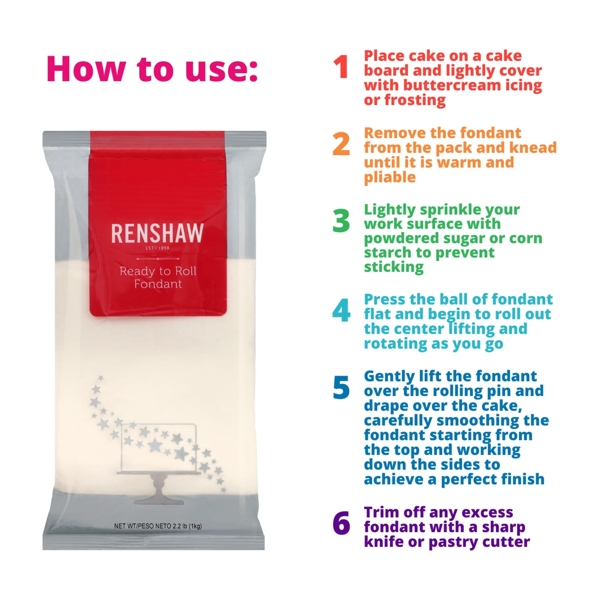 Renshaw Fondant Icing, Ready To Roll, Smooth And Easy To Use, Preferred By Professionals For Cake Decoration, Cookies And Cupcakes, Non-Gmo, Kosher, Halal Approved - White 2.2 Lbready To Roll Fondant Icing - Youll Always Be Ready To Roll With This Convenient Rolled Fondant. Youll Save Time And Money While Achieving Striking Results With This White Fondant. Enjoy The Supple And Workable Nature Of This White Fondant Icing. It Stays Soft And Pliable After Being Warmed To Room Temperature Prior To Rolling Giving You Plenty Of Time To Achieve The Results You Wantthis Fondant Cake Icing Can Be Rolled To The Perfect Thickness For Solid Coverage Or All Types Of Birthday, Wedding, And Celebration Cake, Thin For More Detailed Work, Or Used For Attaching Other Decorations. Sets To A Sleek Finish. Transform Blah Cakes Into Stunning Signature Bakes With Renshaw Ready To Roll Fondant For Cakes.Preferred Fondant Of Professionals - Renshaw Ready To Roll Fondant Is The Preferred Fondant By Professional Cake Decorators And Bakers Worldwide. They Appreciate The Unequaled Quality And Consistency It Offers For Cake Decorating