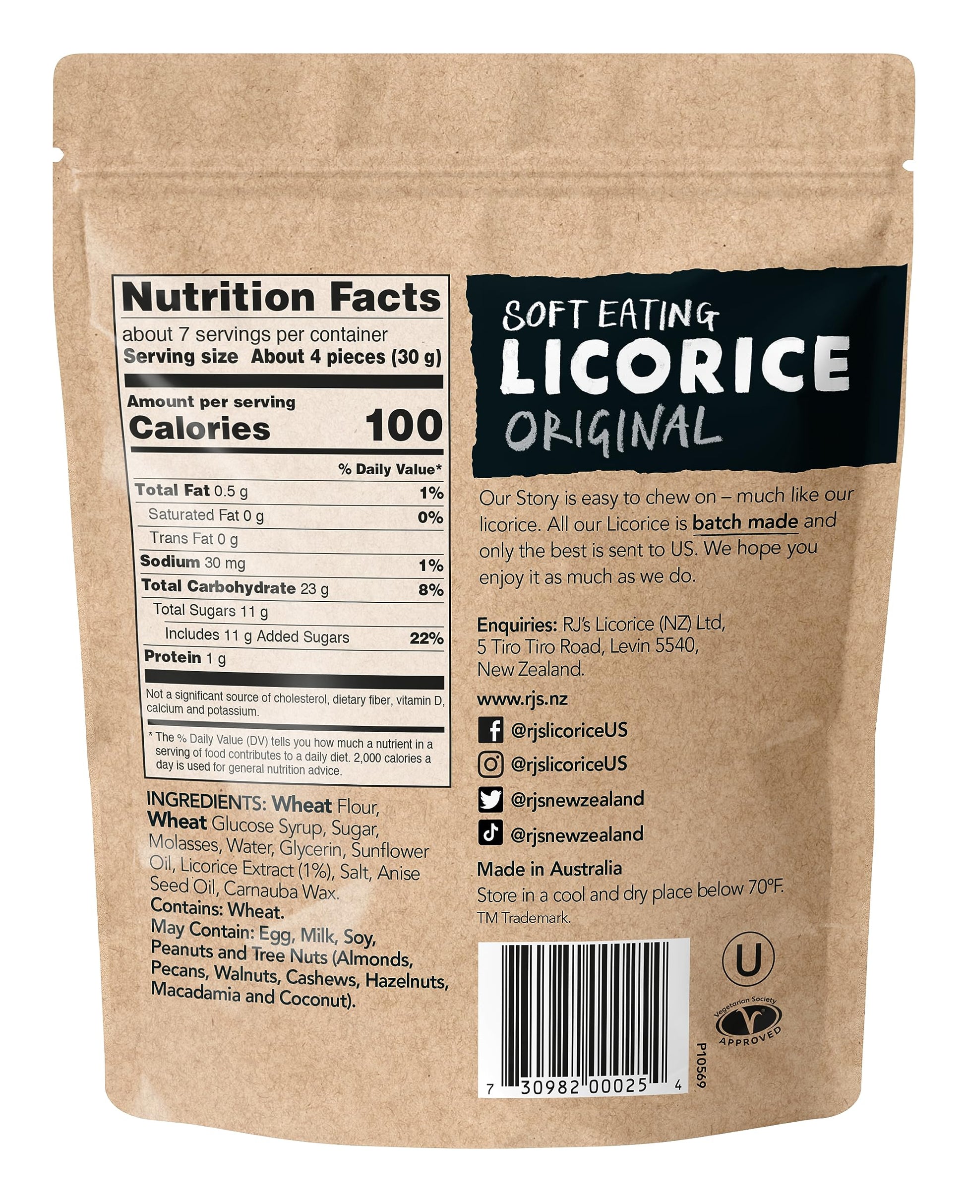 Q: What makes RJ's Licorice different from other licorice brands?A: RJ's Soft Australian Licorice stands out due to its soft and chewy texture, premium quality ingredients, and the absence of palm oil. Its original black flavor is a favorite among licorice enthusiasts.
