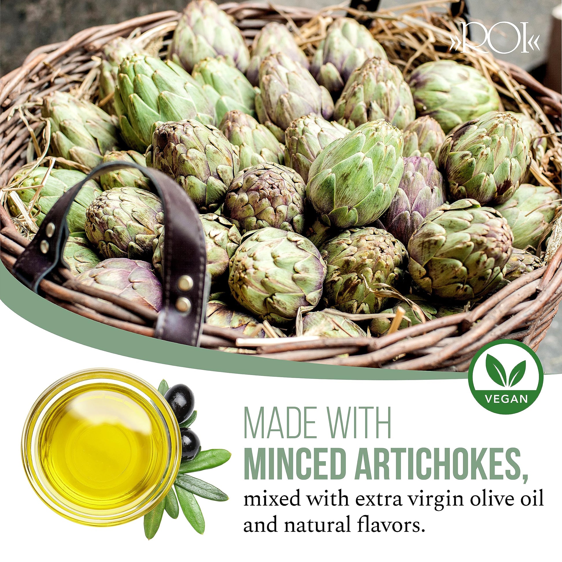 Q: What is ROI Italian Artichoke Dip made of?A: ROI Italian Artichoke Dip is made from chopped artichokes combined with ROI extra virgin olive oil, vinegar, and natural flavoring, creating a rich and creamy dip.