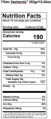 • Q: What makes Roshen Kyiv Vecherniy Chocolate Candy unique? A: Roshen Kyiv Vecherniy Chocolate Candy is unique due to its rich flavor profile and its delightful coating of chopped hazelnuts, making each bite an indulgent experience. It's crafted using high-quality raw materials and modern production techniques, ensuring exceptional taste and quality.