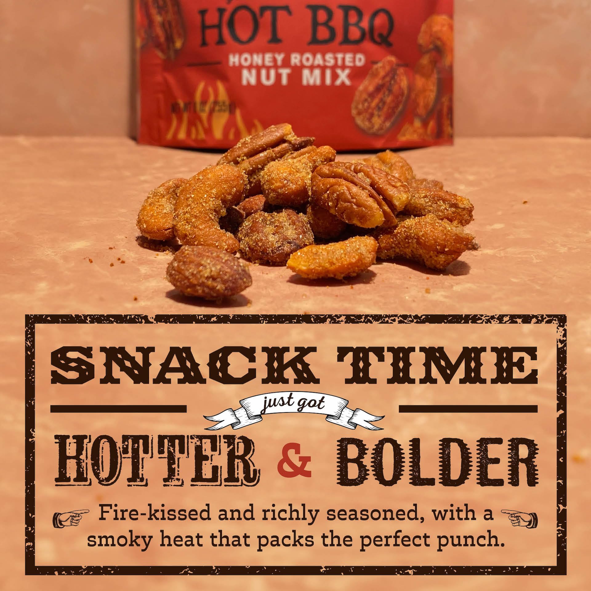Sweet. Smoky. Spicy. And Totally Irresistible Meet the nut mix you didnt know you needed: almonds, cashews, and pecans roasted to perfection and coated with Rufus Teagues famous Blazin Hot BBQ seasoning. Sweet honey, a touch of heat, and a whole lot of smoky goodness-its all here in every handful. Snacks That Taste Like a Treat We dont do boring. Every batch is made with the best cashews, almonds, and pecans, roasted to a golden crunch and smothered in honey-roasted sweetness and bold BBQ flavor. Its snack satisfaction at its finest. Fresh Nuts, Every Time Thanks to our resealable pouch, every bite is just as fresh as the first. Take a handful now or save some for later-your snack game is officially airtight. Made for Every Moment From movie nights to road trips, tailgates to office snacks, this mix is ready for anything. Toss it in your bag, set it out for guests, or just keep it nearby for whenever cravings hit. Big flavor, no matter where you are. BBQ Roots, Real Flavor Born from BBQ tradition, Rufus Teague takes snacks seriously. Every nut is roasted, seasoned, and packed with care right here in the USA. Its bold, its smoky, and its a snack youll never forget. Dont wait to elevate your snack game-grab your Rufus Teague Sweet & Spicy BBQ Honey Roasted Nuts Mix today and savor the smoky sweetness!