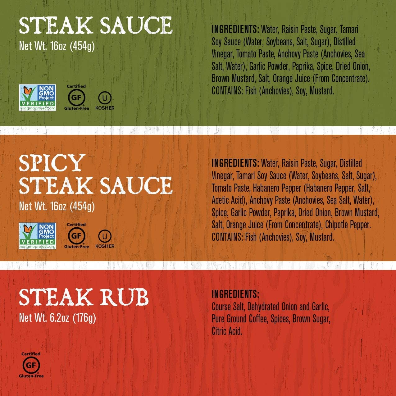 Rufus Teague knows that you don't mess with steak. So listen up if you think steak by itself is as good as it gets. This... gift kit... will... change... your... mind. Definitely not your typical grocery store steak sauce slop. Nope, these sauces are bold and bright and work on everything. And you also get a bottle of the most amazing spice your steak can handle. All in one kit!