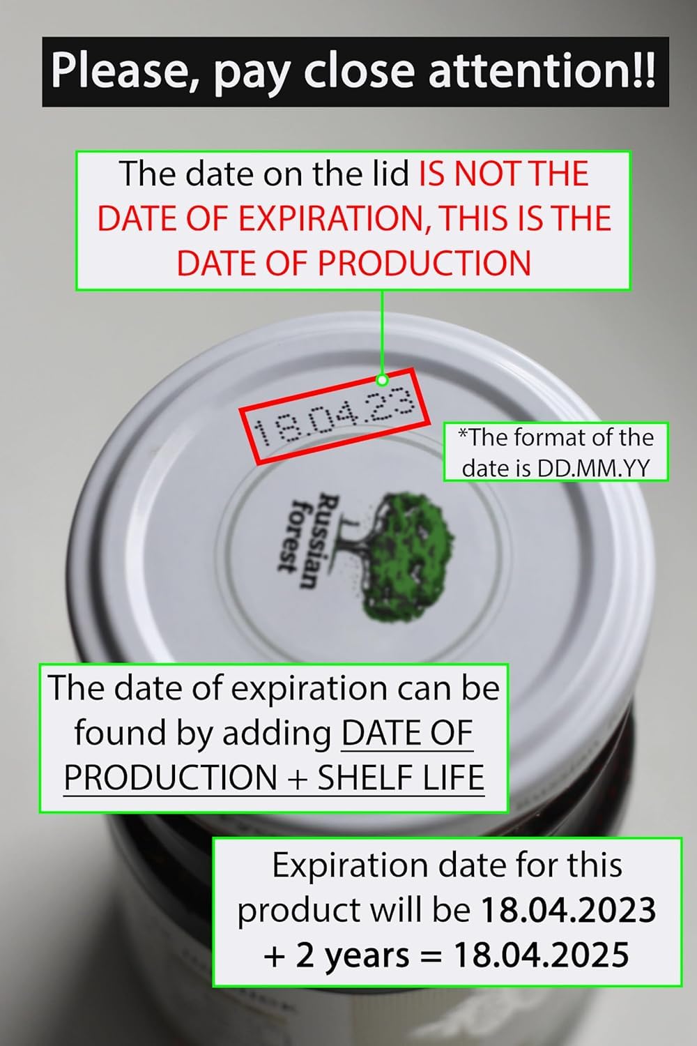 - Q: What precautions should I take regarding the production and expiration date? A: Be aware that the production and expiration dates are provided in the European format, which lists the day first, followed by the month and year.
