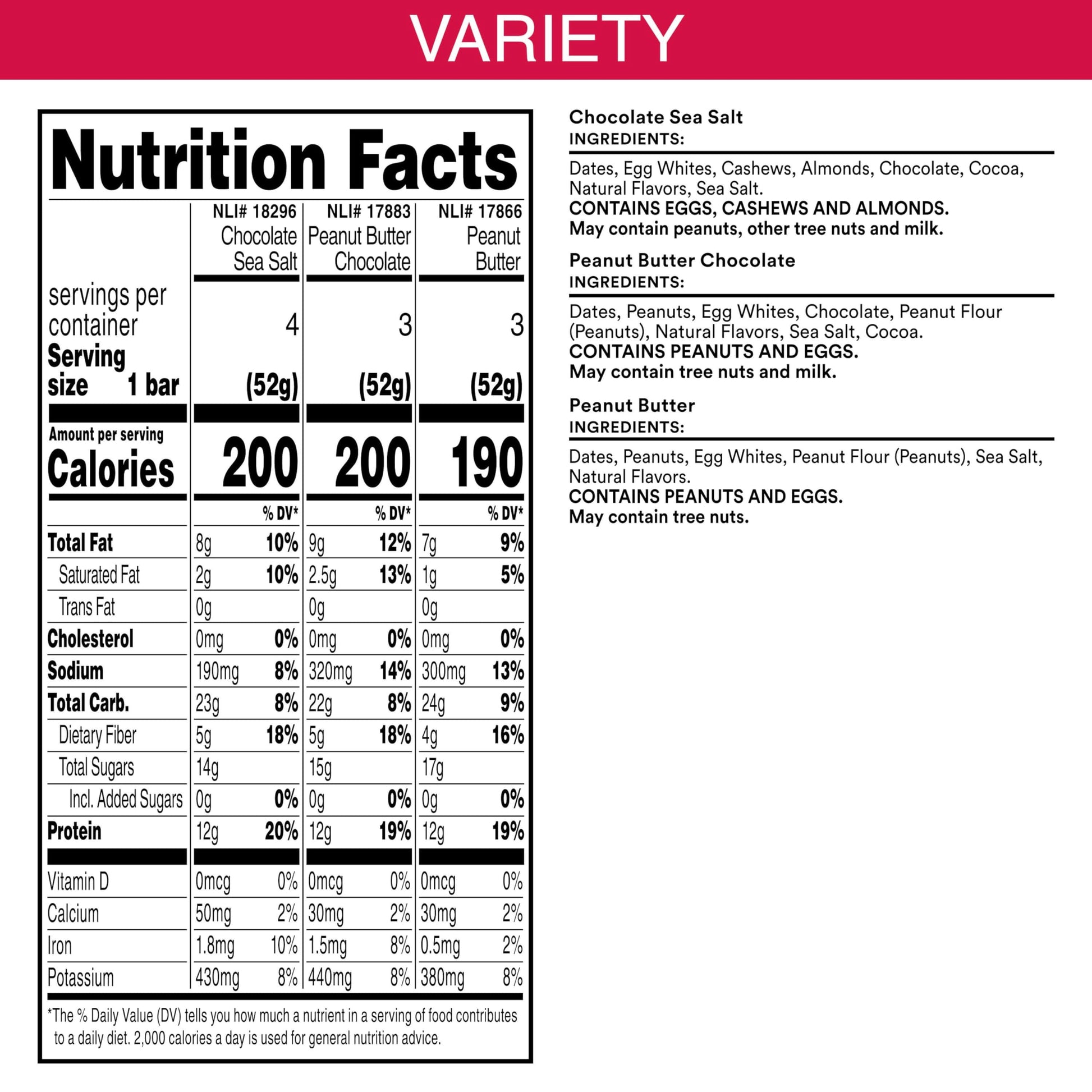 Simple, Delicious Ingredients Make Rxbar Protein Bars A Satisfying Way To Fuel Your Day. These Wholesome Protein Bars Are Filled With Ingredients You Can Recognize. This Variety Pack Includes Peanut Butter, Peanut Butter Chocolate, And Chocolate Sea Salt Flavors. Each Snack Bar Is Made With Egg Whites For Protein, Crunchy Nuts, With Dates To Bind It All Together, And No B.S. Enjoy The Taste Of Simple Ingredients That Will Crush Any Peanut Butter Or Chocolate Cravings You Have During The Day; Just The Right Amount To Fill You Up, Each Serving Contains 12G Of Protein (Up To 20% Daily Value), Is Gluten Free, And Ready To Help You Take On The Day. Enjoy Wholesome Goodness Worth Snacking On. On Your Way To The Gym, In The Office Or Paired With Your Morning Cup Of Joe, Improve Your Daily Routine With Rxbar Protein Bars.