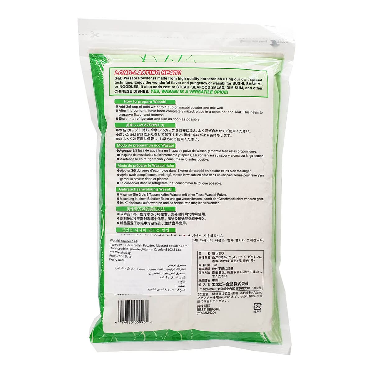 - Q: Does S&B Wasabi Powder contain any allergens or hazardous materials? A: S&B Wasabi Powder does not list any hazardous materials or allergens in its ingredients. However, as with any food product, it is advisable to check the packaging for specific allergy information. Always store the powder in a cool, dry place to maintain its quality.