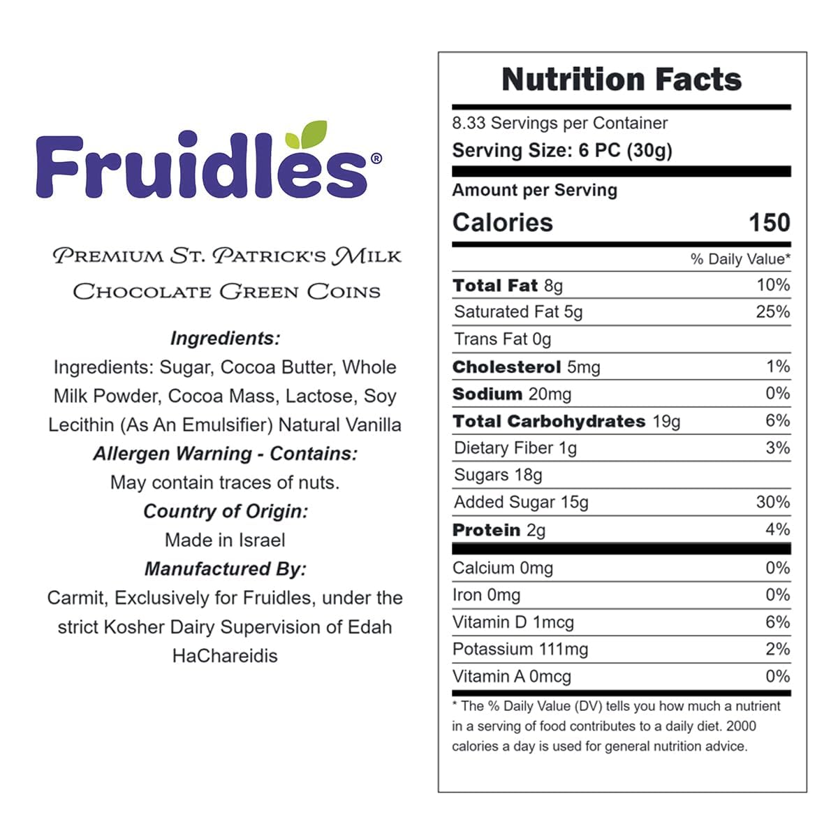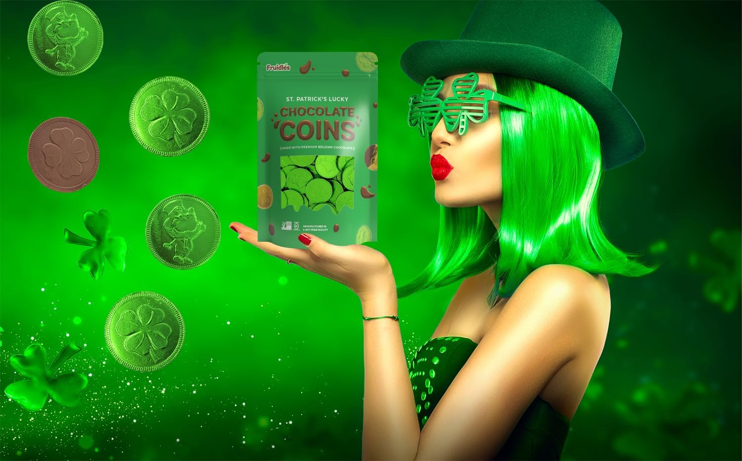 - Q: What are the ingredients in the Saint Patrick's Day Chocolate Green Coins? A: The Saint Patrick's Day Chocolate Green Coins are made from Sugar, Cocoa Butter, Whole Milk Powder, Cocoa Mass, Lactose, Soy Lecithin (as an emulsifier), and Natural Vanilla Flavor. They are manufactured in a nut-free facility and are non-GMO and kosher.