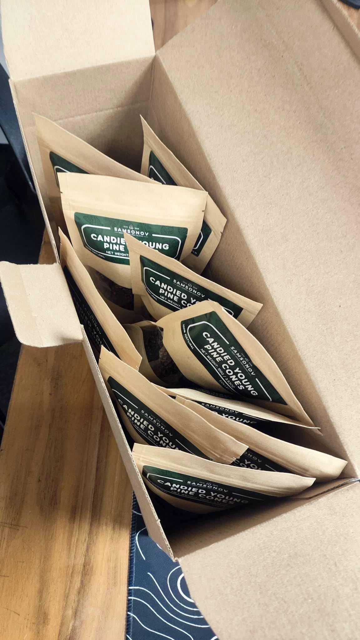 Candied Pine Cones Are A Unique Product That Combines A Unique Taste And Original Look. Candied Pine Cones Have A Very Interesting Taste, As Well As An Incredible Coniferous Aroma. In Their Sweet And Tart Taste There Is A Slight Bitterness And Coniferous Notes. Candied Pine Cones Will Become An Unforgettable Gift And A Real Siberian Souvenir That Will Surely Please And Surprise Anyone. Cones Come In A Craft Bag With Zip Lock On Top For Easy Storage. Small Cones Are Easy To Chew, Sweet And Soft - They Just Melt In Your Mouth.
